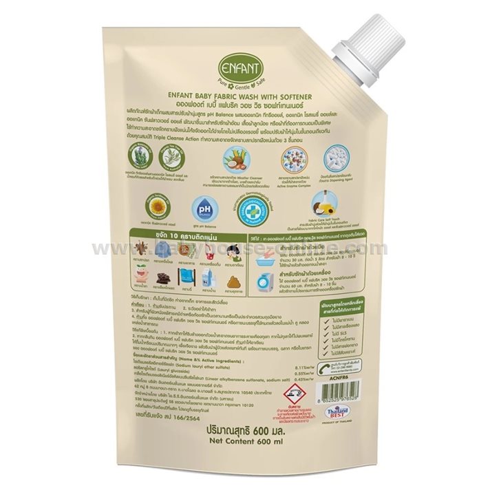 ENFANT (อองฟองต์) น้ำยาซักผ้าเด็กอ่อนผสมปรับผ้านุ่ม 600ml.