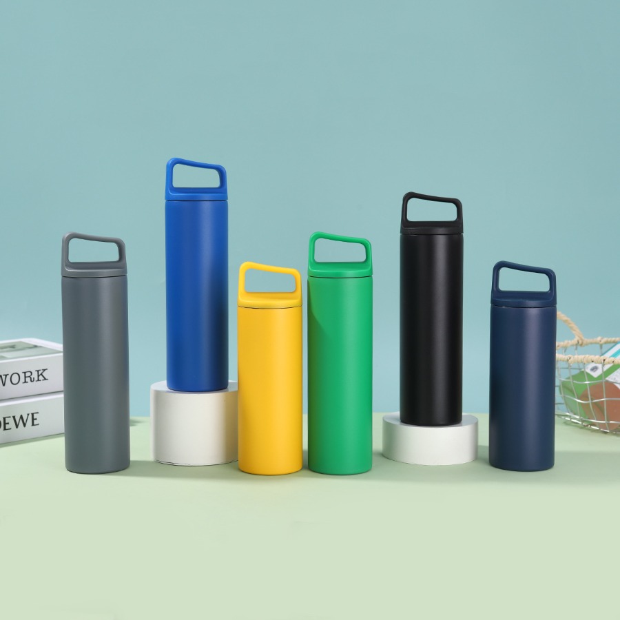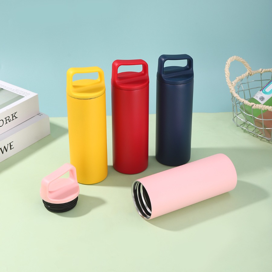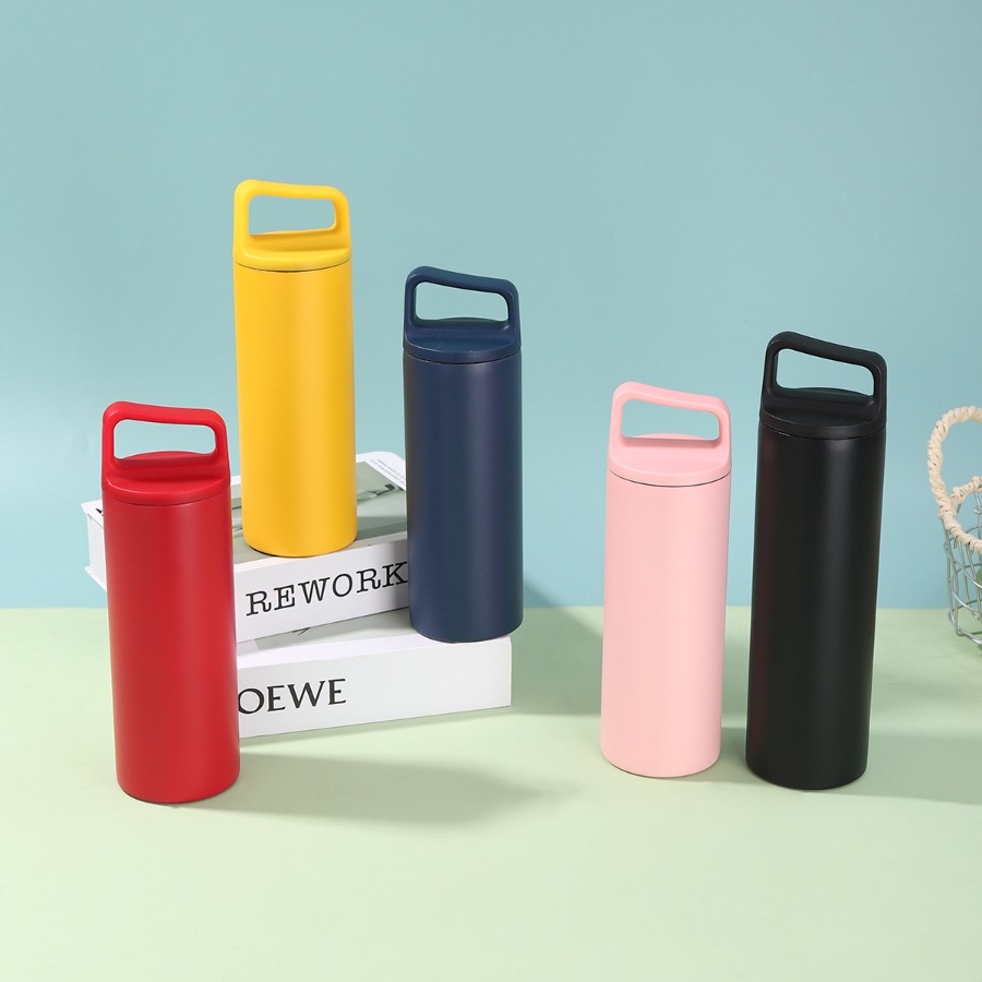 กระบอกน้ำสแตนเลสหูหิ้ว ขวดน้ำสแตนเลส กระบอกน้ำเก็บอุณหภูมิ 500ml