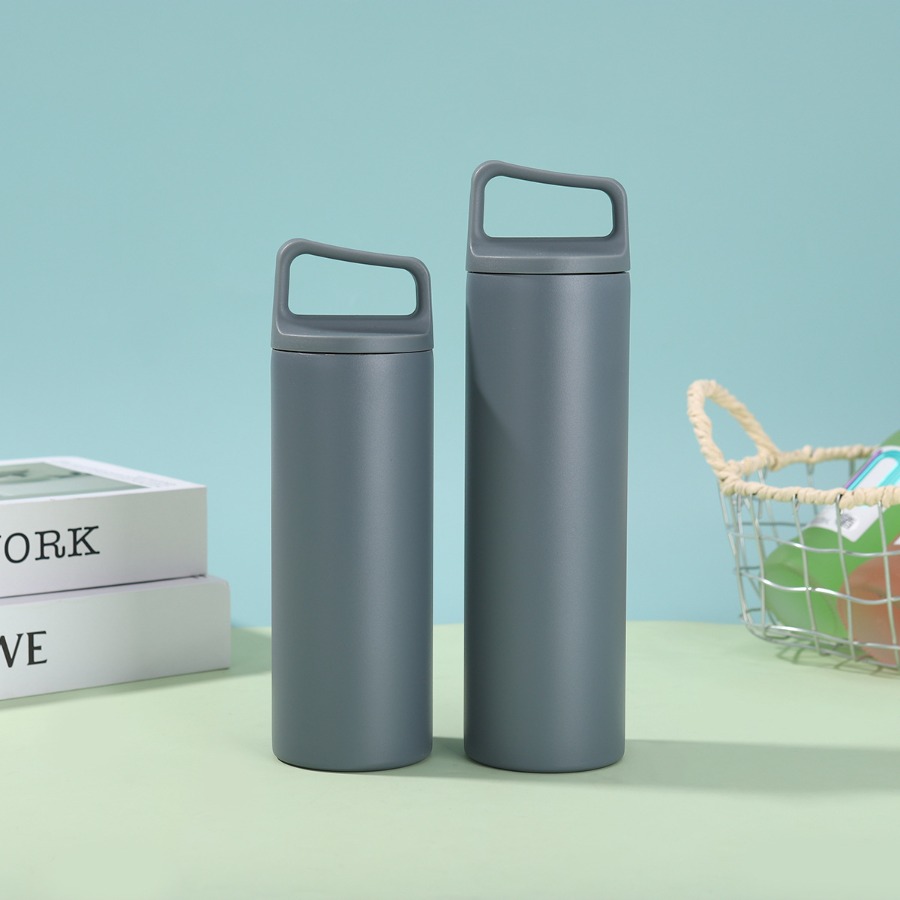 ขวดน้ำสแตนเลสหูหิ้ว ใช้ในการเก็บเครื่องดื่มในการเดินทาง ใส่ได้ทั้งน้ำเย็นและน้ำร้อนสามารถรักษาาอุหภูมิได้ยาวนาน