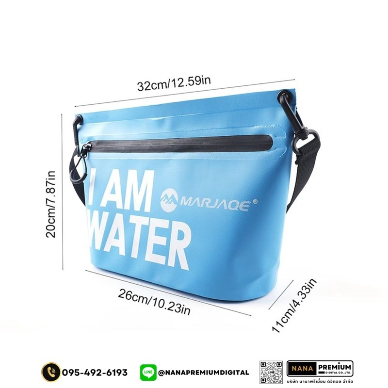 กระเป๋า สําหรับว่ายน้ํา ชายหาด กลางแจ้ง ดําน้ํา พายเรือคายัค ตั้งแคมป์, ปีนเขา, ขี่จักรยาน, ตกปลา, พักผ่อน, ชายหาด กระเป๋ากันน้ำคุณภาพดี ผลิตมาจากผ้า พีวีซี ทาโพลีน (PVC Tarpauline ) แข็งแรง ไม่แตกหัก กันน้ำเล็ดรอดเข้ามาได้ 100% เป็นถุงกันน้ำเอนกประสงค์ เหมาะสำหรับกับกิจกรรมที่เกี่ยวกับน้ำหรือพื้นที่ที่มีความชื้น ซึ่งคุณจะมั่นใจได้ว่าสิ่งของที่อยู่ภายในไม่เปียกแน่นอน กระเป๋ากันน้ำมีระบบล๊อค RDL (Roll-down Lock) ที่มีความแข็งแรง ไม่แตกหักได้ง่ายๆ ทนแดด และน้ำได้ดี มีสายสะพายที่มีความนิ่มให้ความสบาย สามารถปรับระดับได้ ขนาด: 26 * 11 * 20 ซม.