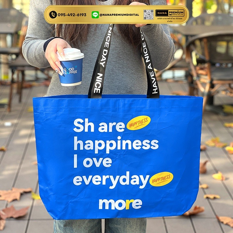 หากคุณสนใจรับผลิตกระเป๋ากระสอบพลาสติกที่มีลายพิมพ์ สกรีนโลโก้ หรือแม้แต่ QR Code เพื่อเพิ่มความใกล้ชิดกับแบรนด์ของคุณ คุณสามารถสอบถามรายละเอียดเพิ่มเติมได้