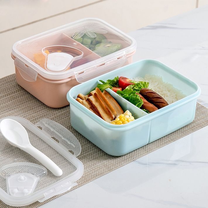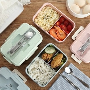 กล่องข้าวไมโครเวฟ ผลิตจากวัสดุข้าวสาลี ขนาด 20x13x7 cm.พร้อมช้อนและตะเกียบสแตนเลส ฝามีซีลยางกันอาหารหกข้างนอก (ไม่กั้นระหว่างช่อง) เข้าช่องฟรีซได้ อุ่นอาหารในไมโครเวฟได้ (-20 ถึง120 องศา) อุ่นไมโครเวฟ ไม่ควรเกิน 2 นาที ห้ามนำภาชนะเปล่าเข้าเวฟ ต้องมีน้ำหรืออาหาร สามารถอุ่นทั้งฝาได้ แต่ให้เปิดจุกยางออกก่อน ช้อนและตะเกียบสแตนเลสเข้าเวฟไม่ได้จ้า ข้าวสาลี+พลาสติก PP , Food grade , BPA Free