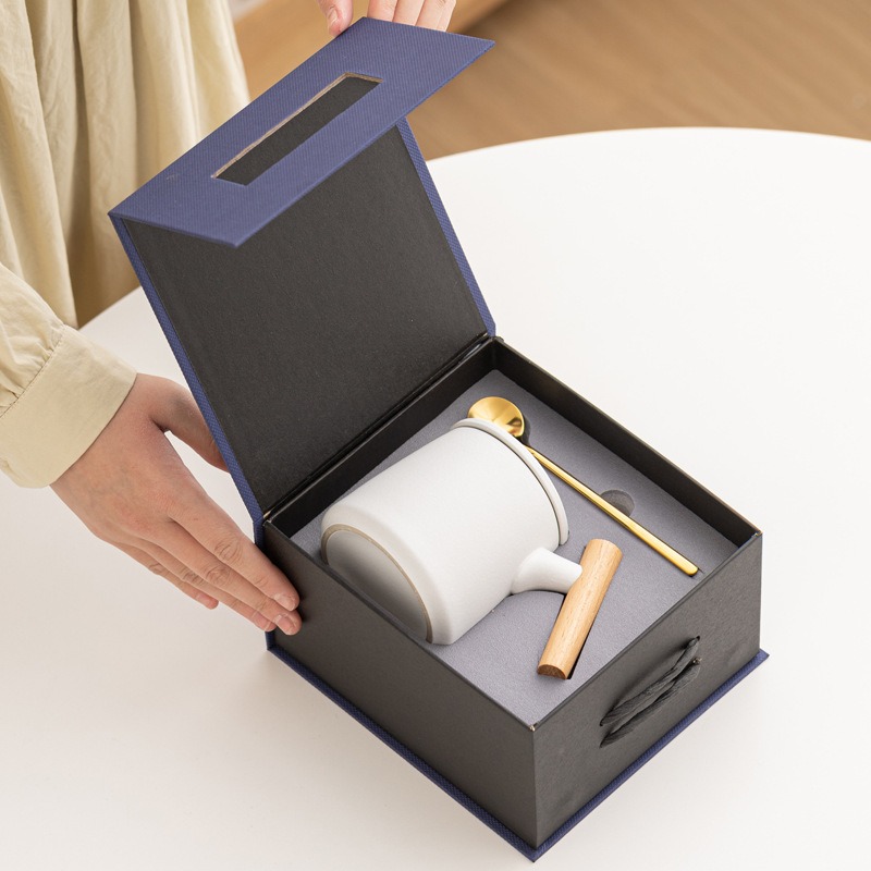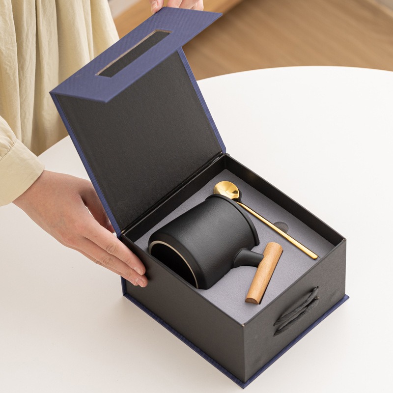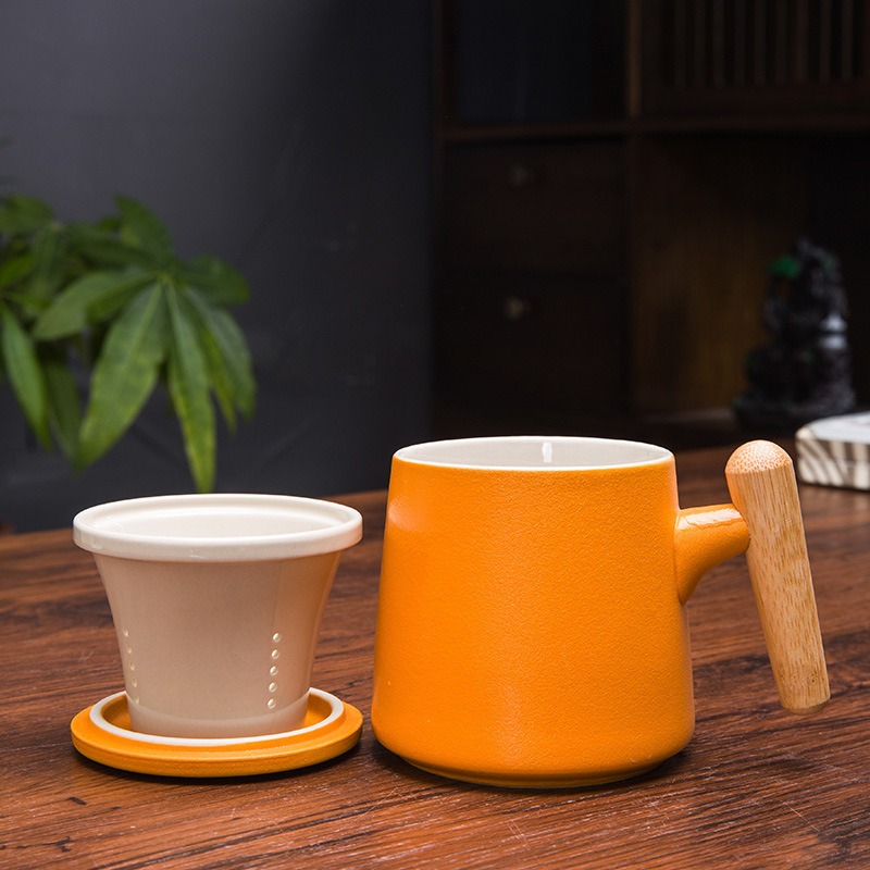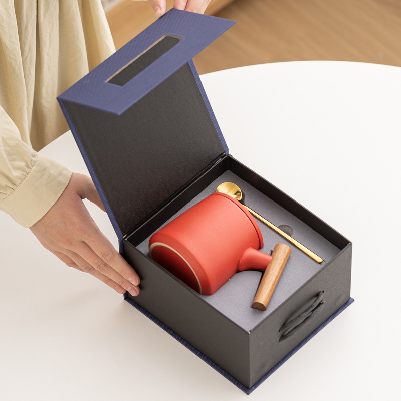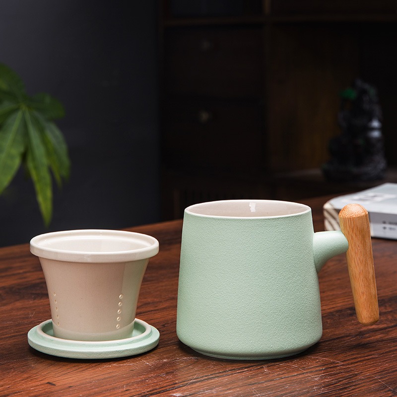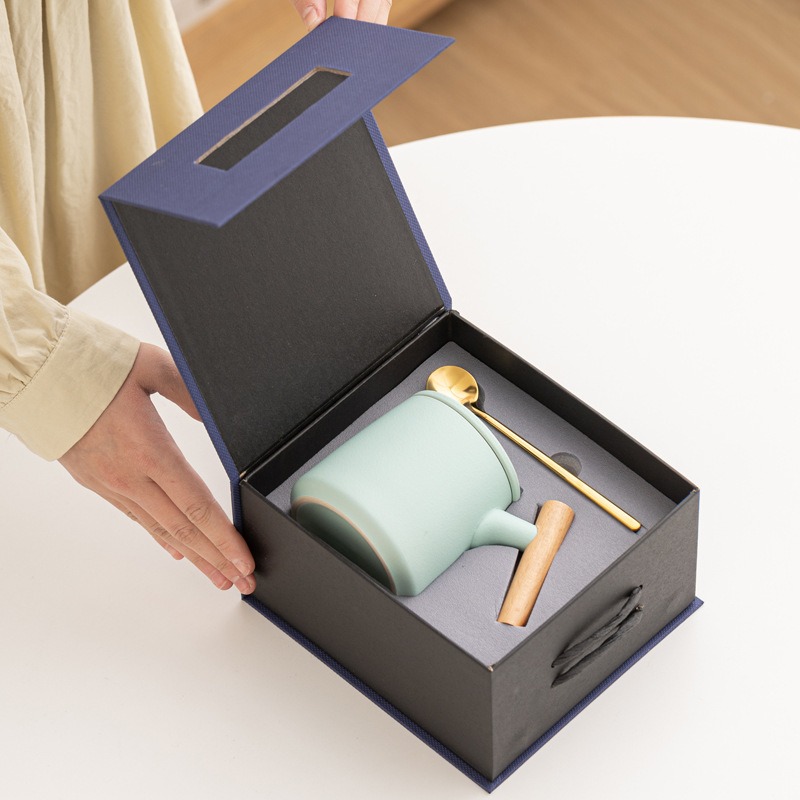 Gift Set แก้วน้ำเซรามิกสไตล์ญี่ปุ่นแบบเรียบ ด้ามไม้เคลือบ พร้อมฝา แก้วกาแฟสกรีนโลโก้ ทำเป็นของพรีเมี่ยม ของชำร่วย