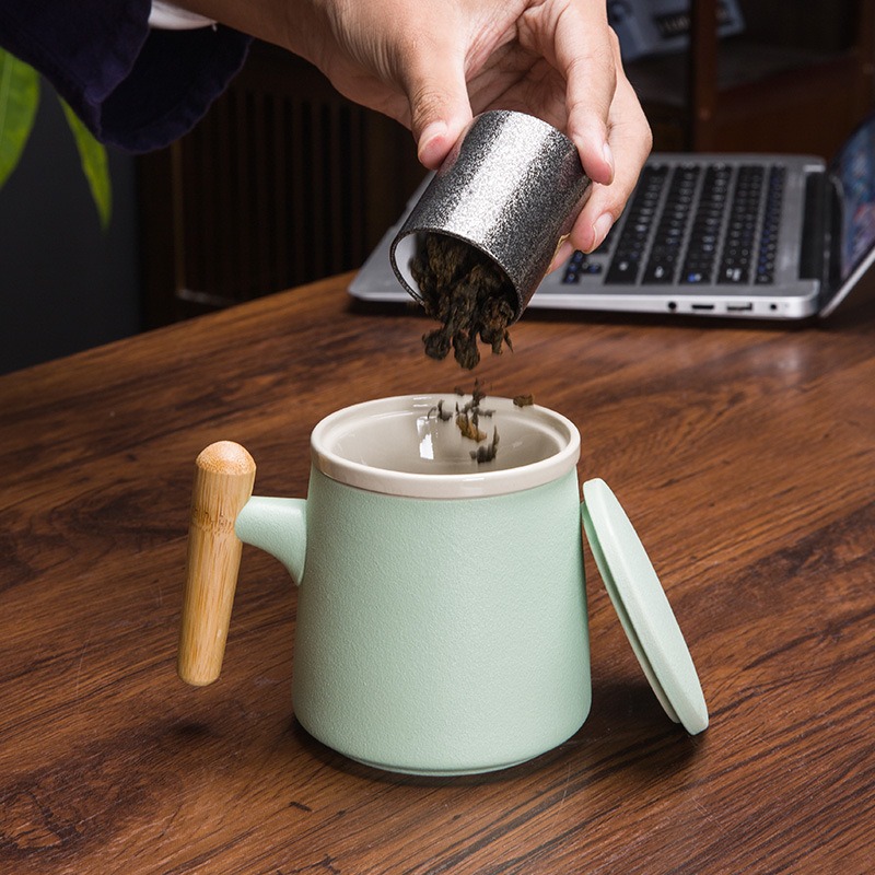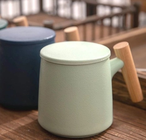 รับผลิต Gift Set แก้วน้ำเซรามิกสไตล์ญี่ปุ่นแบบเรียบ ด้ามไม้เคลือบ พร้อมฝา แก้วกาแฟสามารถสกรีนชื่อ , ภาพหรือโลโก้ต่างๆ