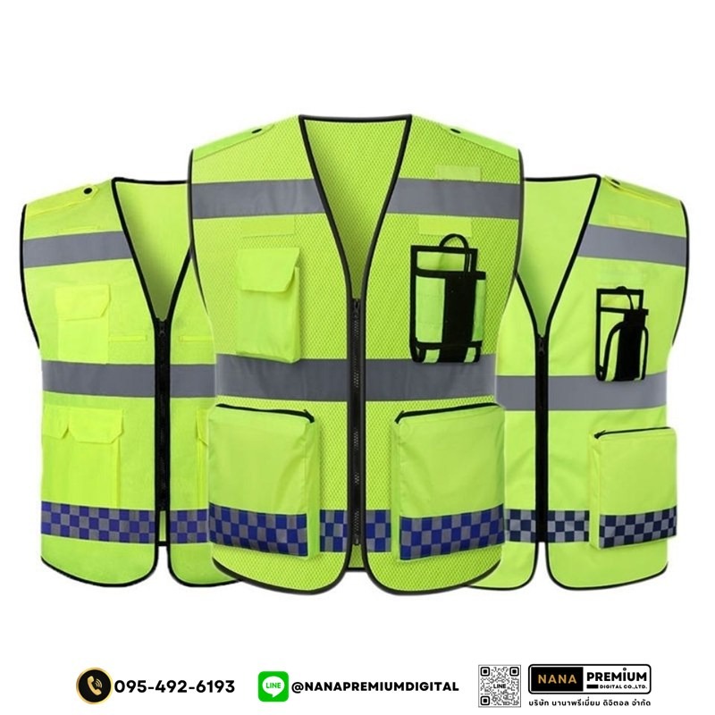 เสื้อกั๊กนิรภัยติดพัดลม เสื้อสะท้อนแสงมีพัดลม เสื้อนิรภัยติดพัดลม ระบายอากาศ คล้ายร้อน รับผลิตเสื้อสะท้อนแสงและเสื้อเซฟตี้พร้อมบริการสกรีนครบวงจร