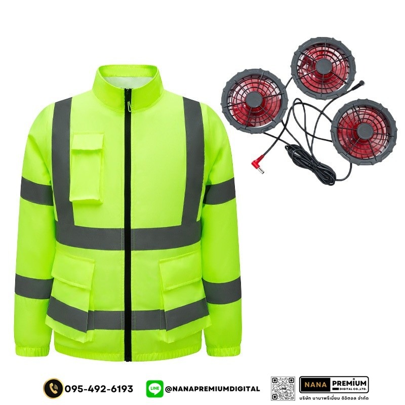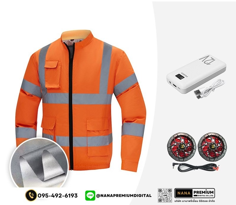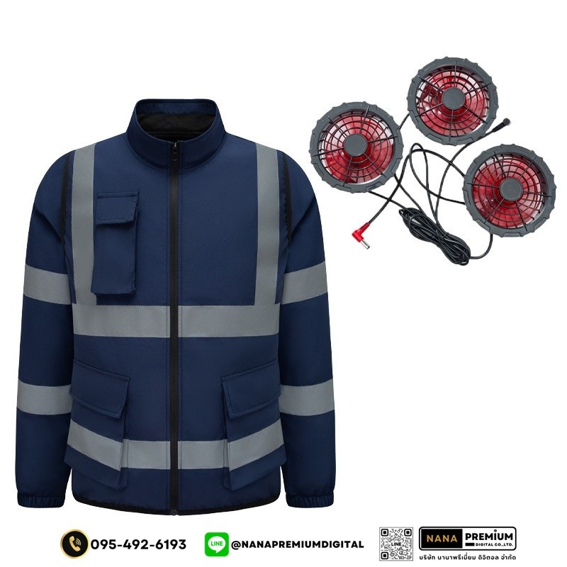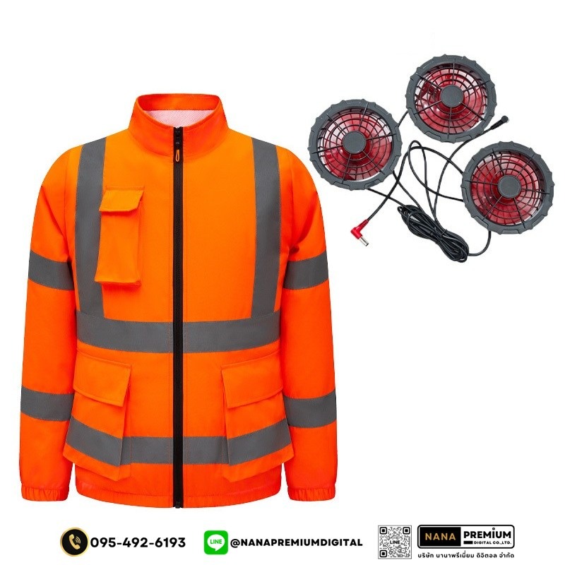 เสื้อแขนยาวนิรภัยติดพัดลม เสื้อสะท้อนแสงมีพัดลม เสื้อนิรภัยติดพัดลม ระบายอากาศ คล้ายร้อน รับผลิตเสื้อสะท้อนแสงและเสื้อเซฟตี้พร้อมบริการสกรีนครบวงจร