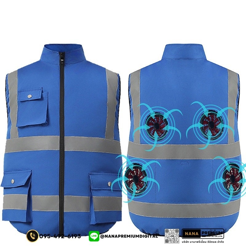 เสื้อกั๊กนิรภัยติดพัดลม เสื้อสะท้อนแสงมีพัดลม เสื้อนิรภัยติดพัดลม ระบายอากาศ คล้ายร้อน รับผลิตเสื้อสะท้อนแสงและเสื้อเซฟตี้พร้อมบริการสกรีนครบวงจร