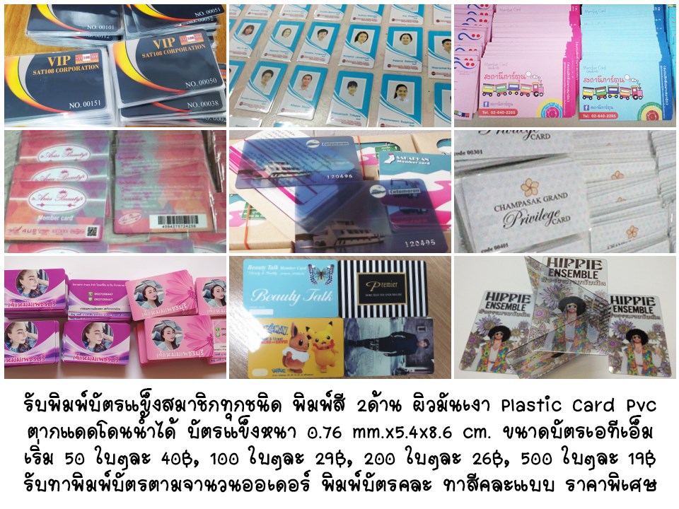 รับพิมพ์การ์ดพีวีซีพลาสติก พิมพ์บัตรเร็ว พิมพ์บัตรน้อย พิมพ์บัตรสีสวย ทำบัตรเมมเบอร์ทุกแบบ ทำบัตรพนักงานทุกชนิด