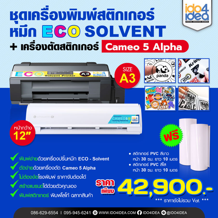 [ECO-Solvent-Set] ชุดเครื่องพิมพ์สติกเกอร์ หมึก ECO-Solvent พร้อมเครื่องตัด Cameo 5 Alpha