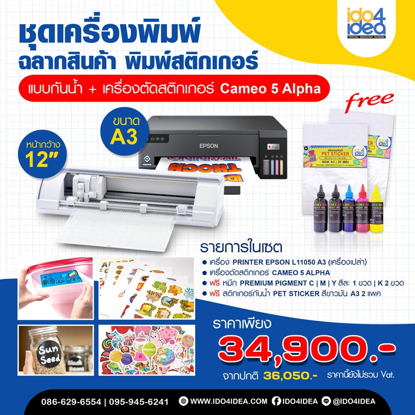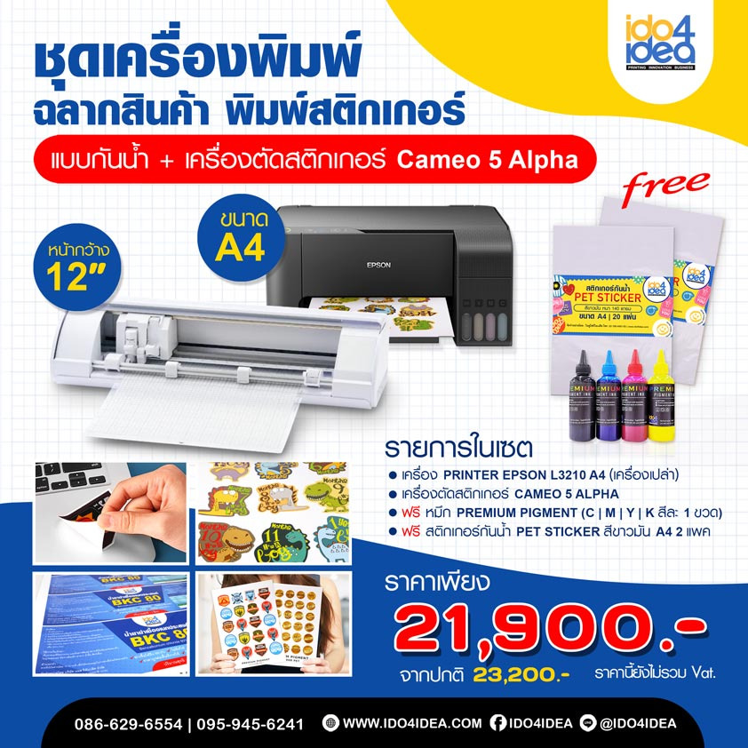 [Sticker-Set-4] ชุดเครื่องปริ้นฉลากสินค้า พิมพ์สติกเกอร์ แบบกันน้ำ ขนาด A3 + เครื่องตัดสติกเกอร์ Cameo 5 Alpha