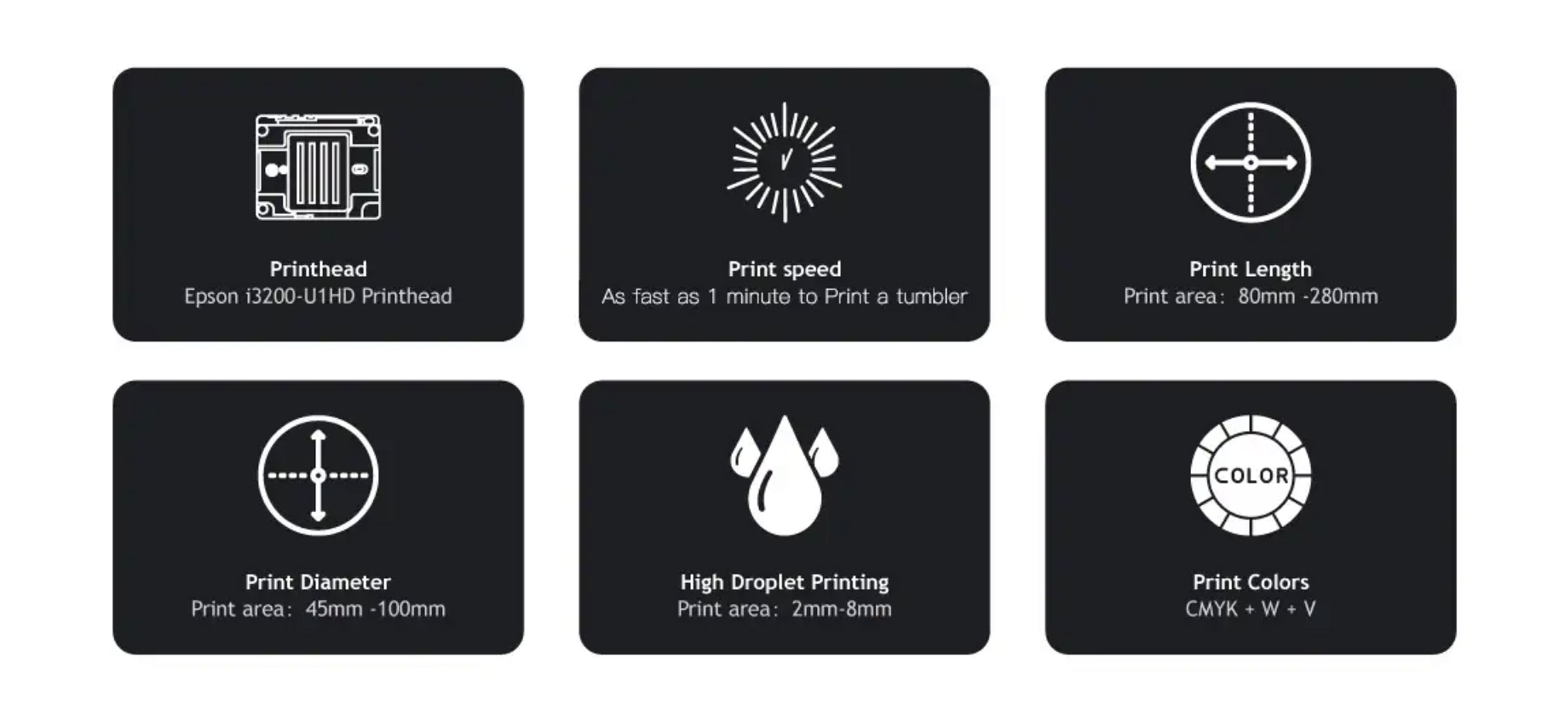หนึ่งในจุดอ่อนของเครื่องพิมพ์ทั่วไปคือการพิมพ์บนวัตถุที่ไม่ได้เป็นทรงกระบอกตรง แต่ เครื่องพิมพ์ยูวี MT-Cylinder Elf (Mini) ก้าวข้ามขีดจำกัดนั้นด้วย: