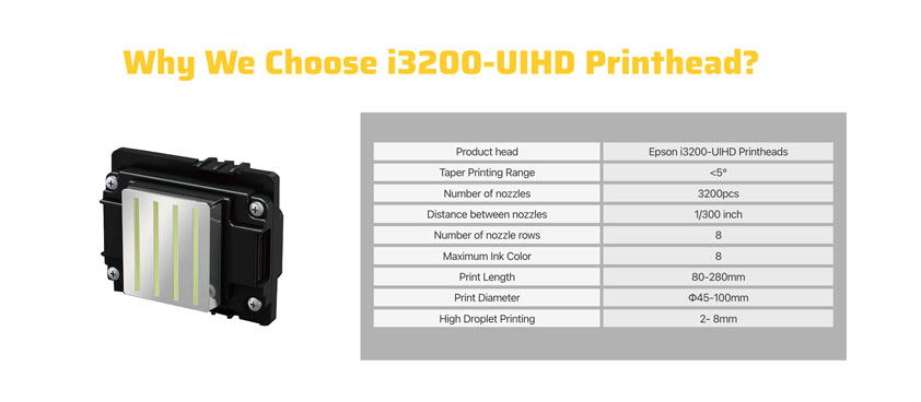 หัวใจหลักของ เครื่องพิมพ์ยูวี MT-Cylinder Elf (Mini) คือการเลือกใช้หัวพิมพ์ระดับอุตสาหกรรมอย่าง Epson I3200-U1HD ซึ่งขึ้นชื่อเรื่องความทนทานและความละเอียดที่สูงถึง 1200 dpi ทำให้ภาพที่ได้มีความเนียนละเอียด สีสันแม่นยำด้วยระบบควบคุมสี ICC ปัญหาเรื่องการพิมพ์ภาพไล่เฉดสีแล้วเป็นชั้นๆ จะหมดไป