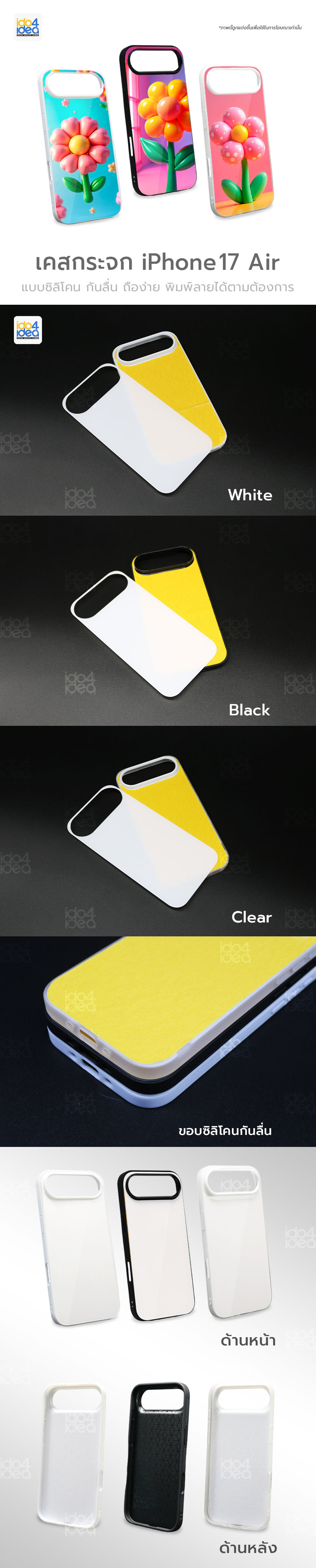 เคส iPhone 17 Air เคสกระจกซิลิโคน สำหรับพิมพ์ภาพ