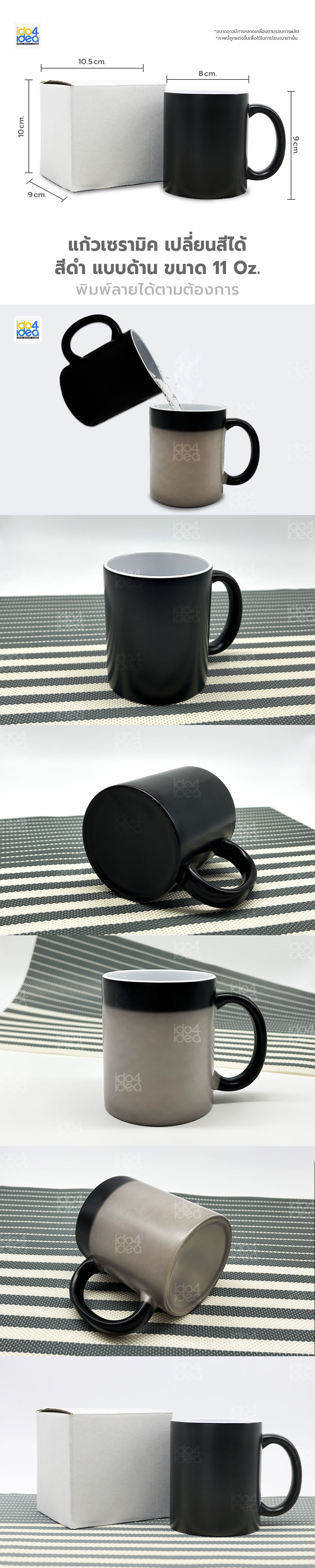 แก้วเซรามิค เปลี่ยนสี สีดำ แบบด้าน 11 oz. สำหรับพิมพ์สกรีนทรานเฟอร์, แก้วSublimation, แก้วสำหรับสกรีน