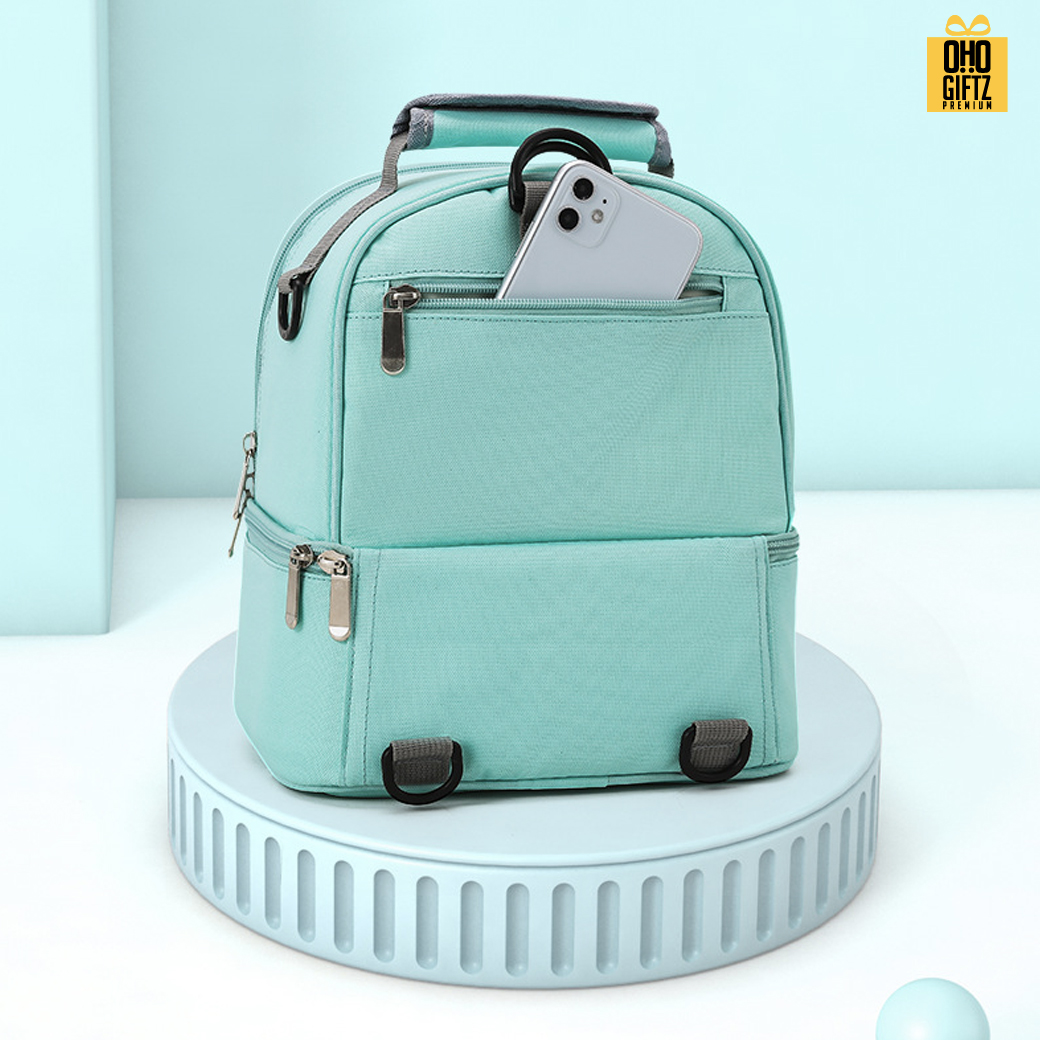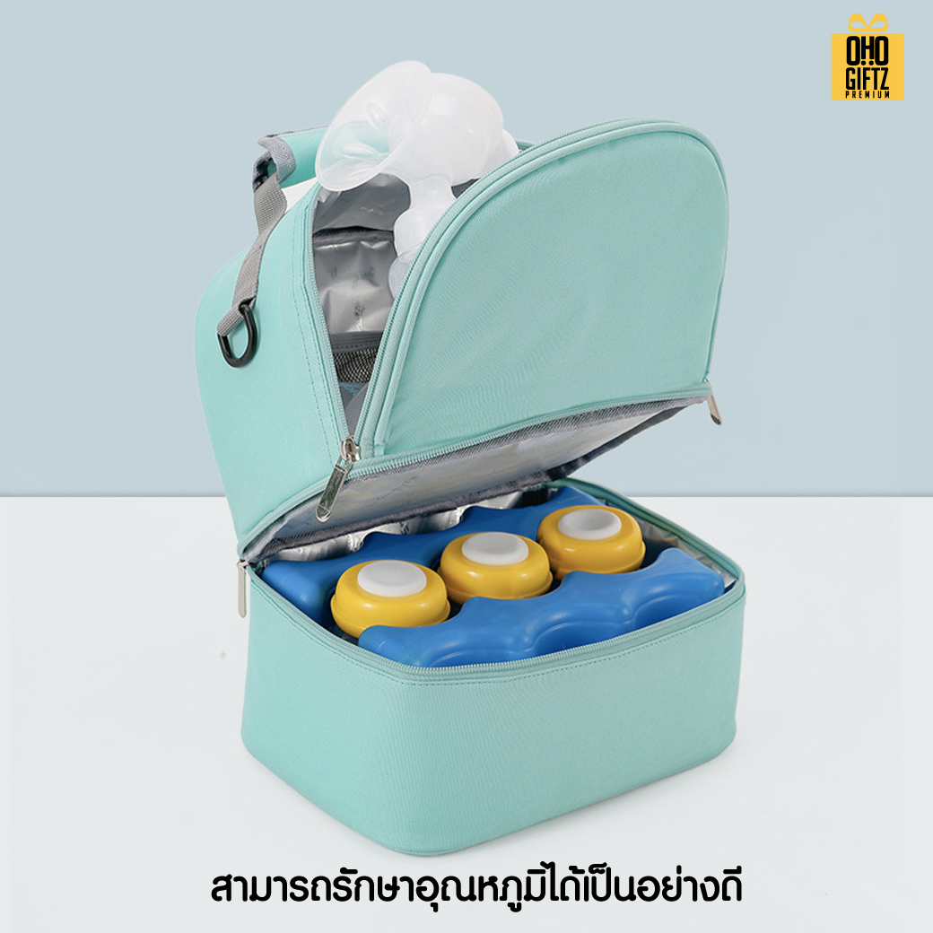กระเป๋าคุณแม่ลูกอ่อน มีช่องใส่ขวดนมเก็บอุณหภูมิได้ ดีไซน์มินิมอล ใส่อาหารได้ทั้งร้อนและเย็น ด้านในบุฟอยล์อะลูมิเนียมช่วยเก็บรักษาอุณหภูมิ สายกระเป๋ารับน้ำหนักได้เป็นอย่างดี กระเป๋าเปิดได้สองชั้นทั้งล่างและบน สะดวกในการพกพา