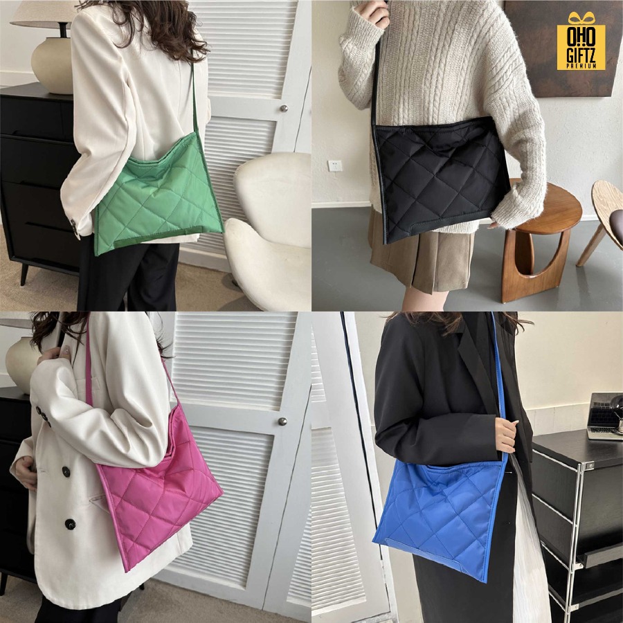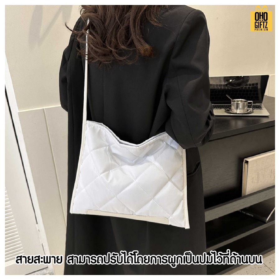 กระเป๋าผ้าทรงสี่เหลี่ยมตาราง ดีไซน์เก๋ไก๋ สะดวกในการสะพาย ผลิตจากวัสดุคุณภาพดี สีสันสวยงาม กระเป๋าน้ำหนักเบา ขนาดพอเหมาะ ใช้ใส่ของใช้ต่างๆ ได้
