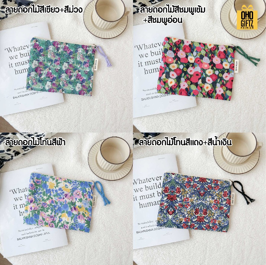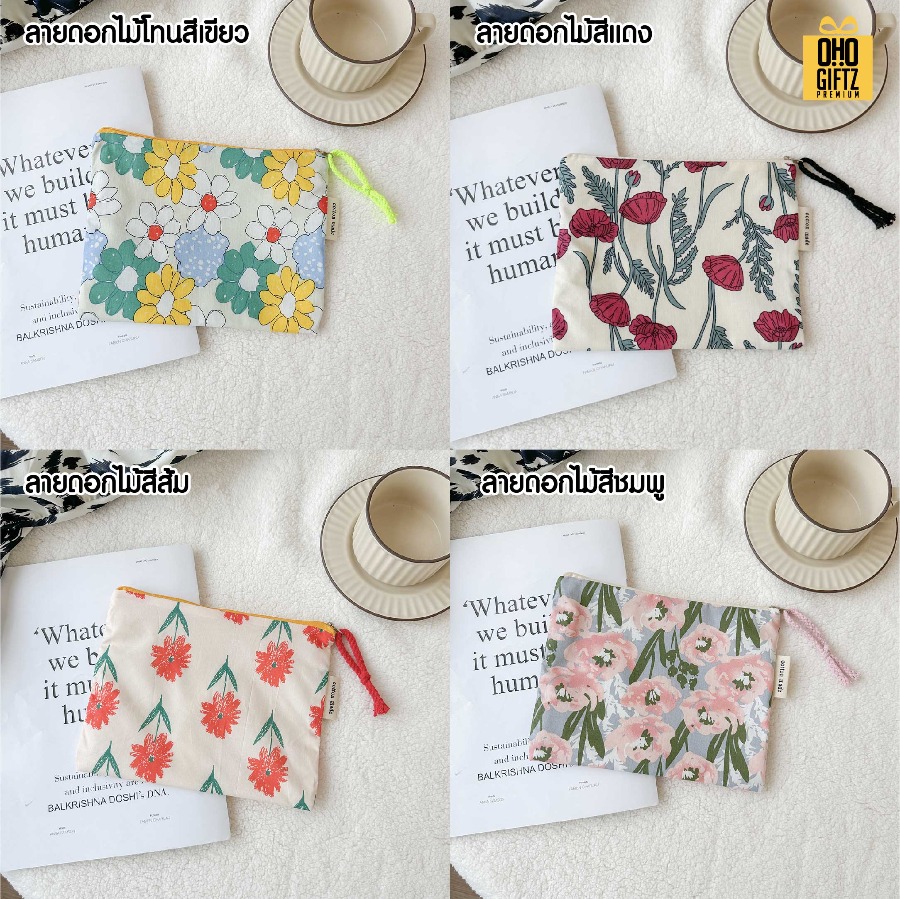 กระเป๋าผ้าใส่เครื่องสำอางลายสก็อต สกรีนโลโก้ ทำเป็นของพรีเมี่ยมได้ (ขั้นต่ำ 100 ชิ้น)