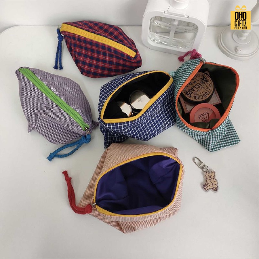 กระเป๋าผ้าใส่เครื่องสำอางลายสก็อต ดีไซน์มินิมอล สามารถบรรจุเครื่องสำอาง ผลิตจากวัสดุคุณภาพดี ใส่สิ่งของได้สะดวกปากกระเป๋ากว้าง เหมาะกับยามเดินทาง หรือพกพาออกนอกสถานที่
