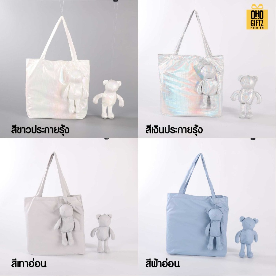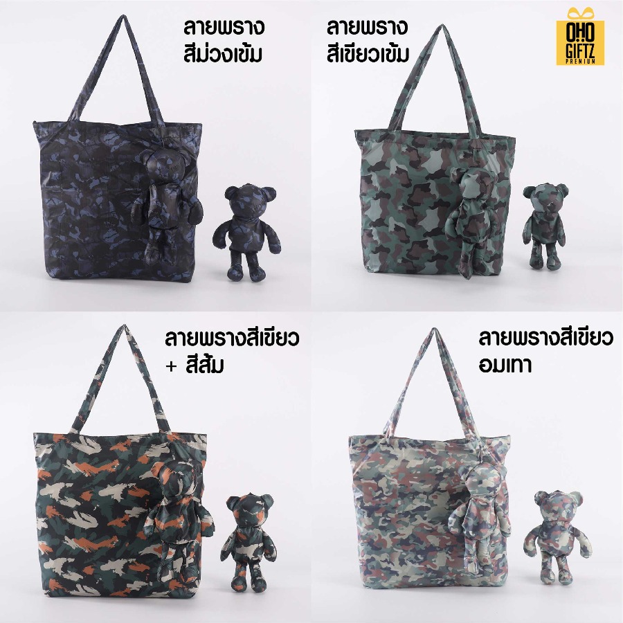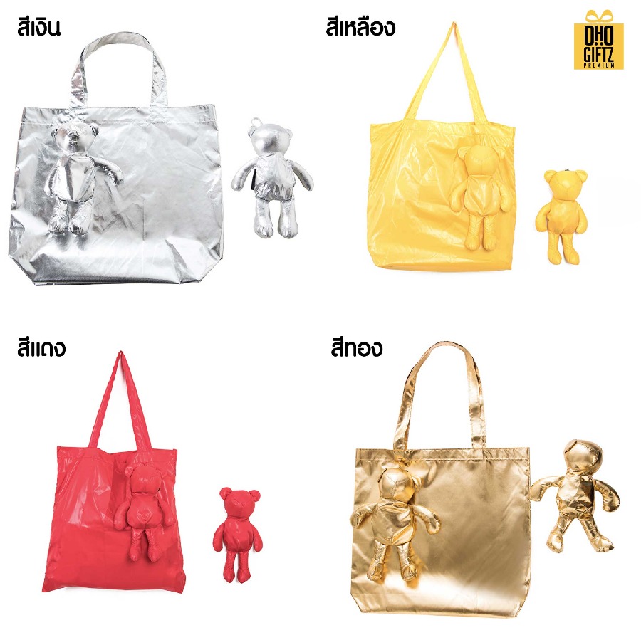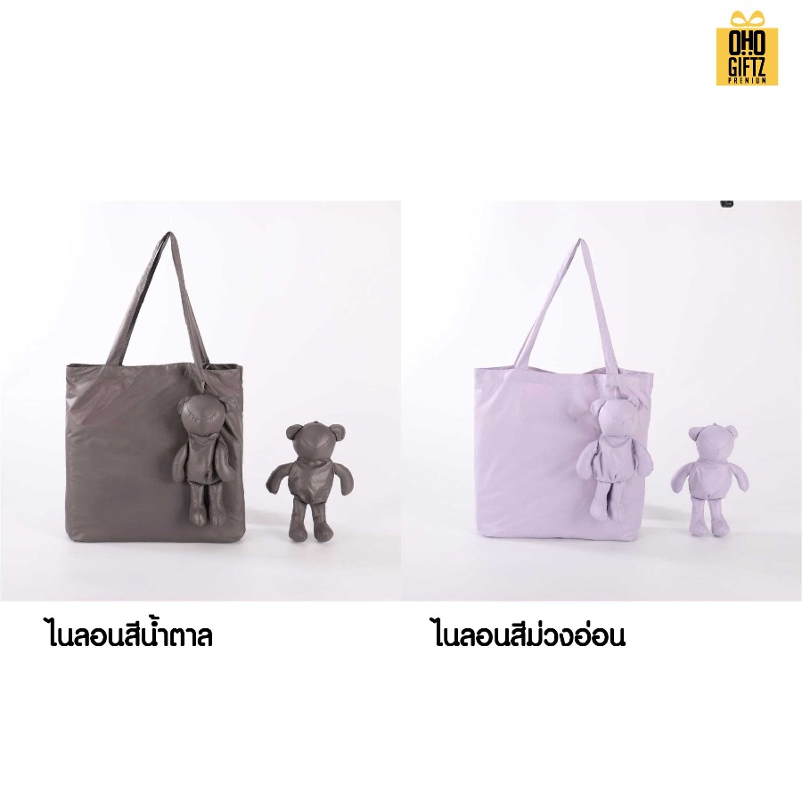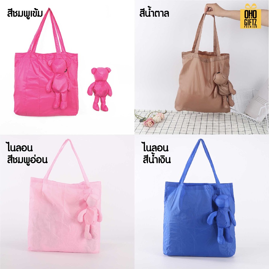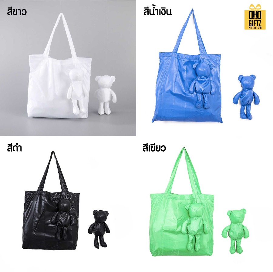 กระเป๋าหมีพับได้ สกรีนโลโก้ ทำเป็นของพรีเมี่ยม (ขั้นต่ำ 100 ชิ้น)