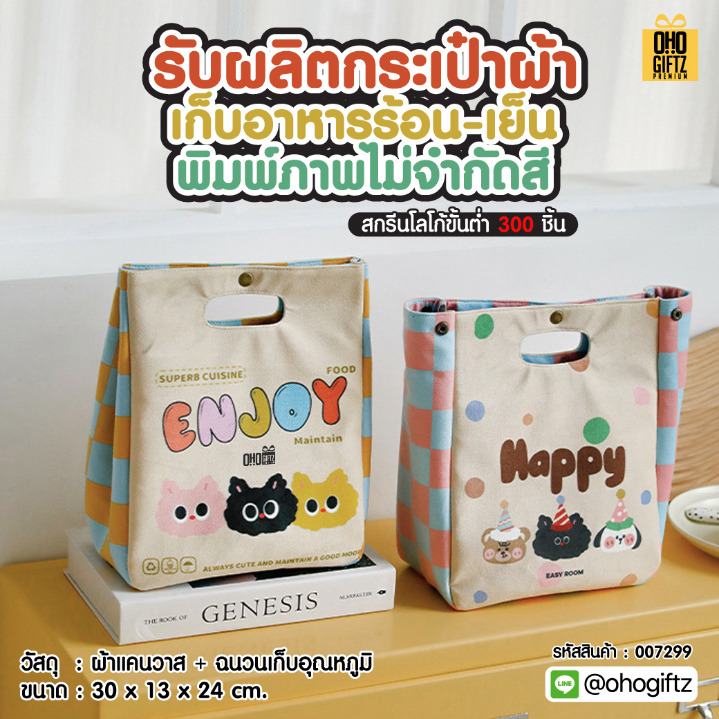 รับผลิตกระเป๋าผ้าเก็บอาหารร้อน-เย็น พิมพ์ภาพไม่จำกัดสี สกรีนโลโก้ ทำเป็นของพรีเมี่ยม