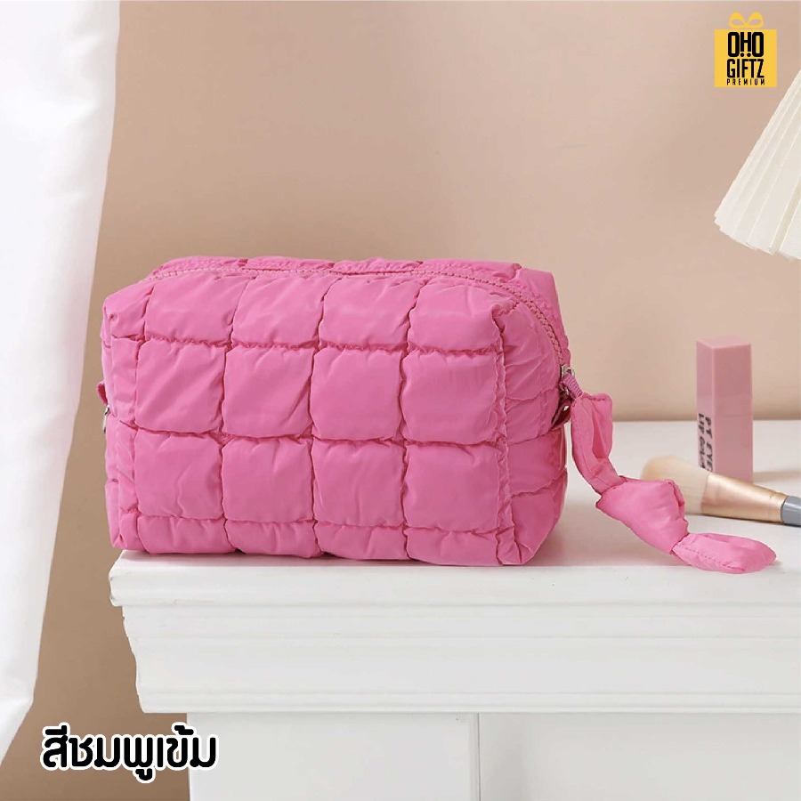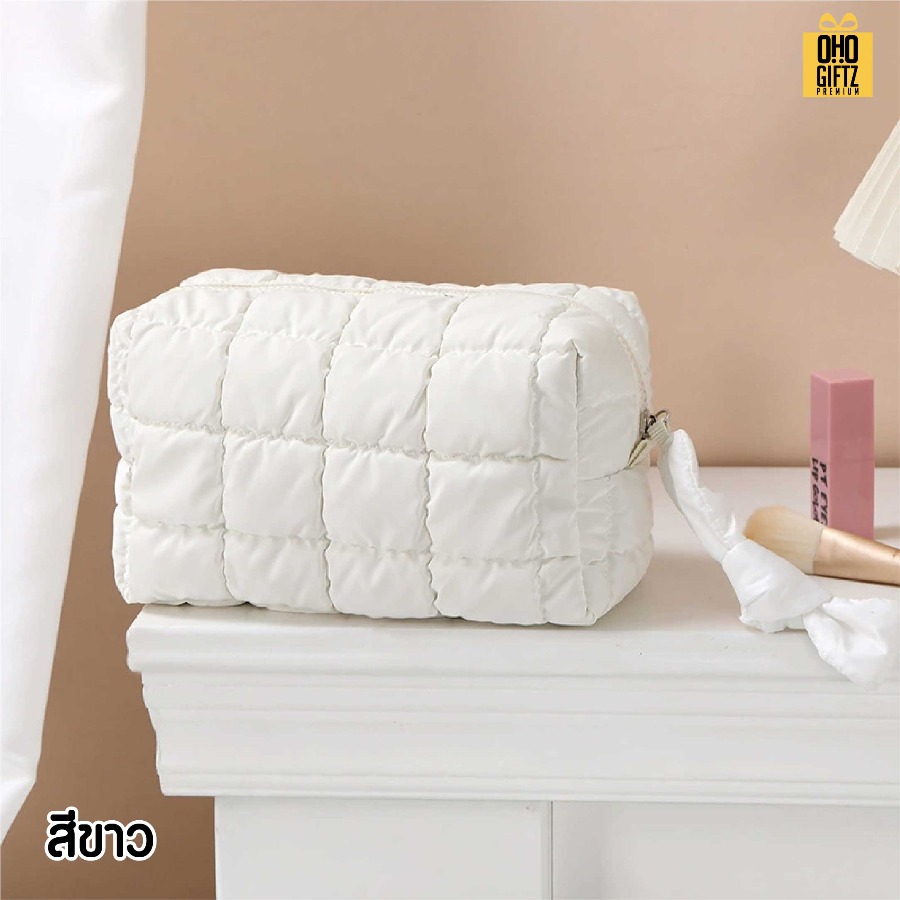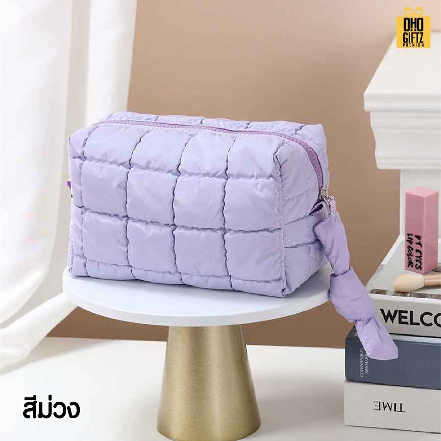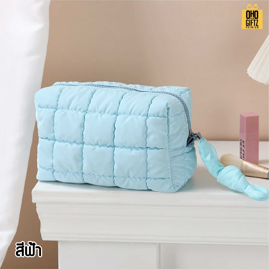 กระเป๋าเครื่องสำอางผ้าบุนวม ผลิตโลโก้ ติดลาเบล ทำเป็นของพรีเมี่ยม (ขั้นต่ำ 100 ชิ้น)
