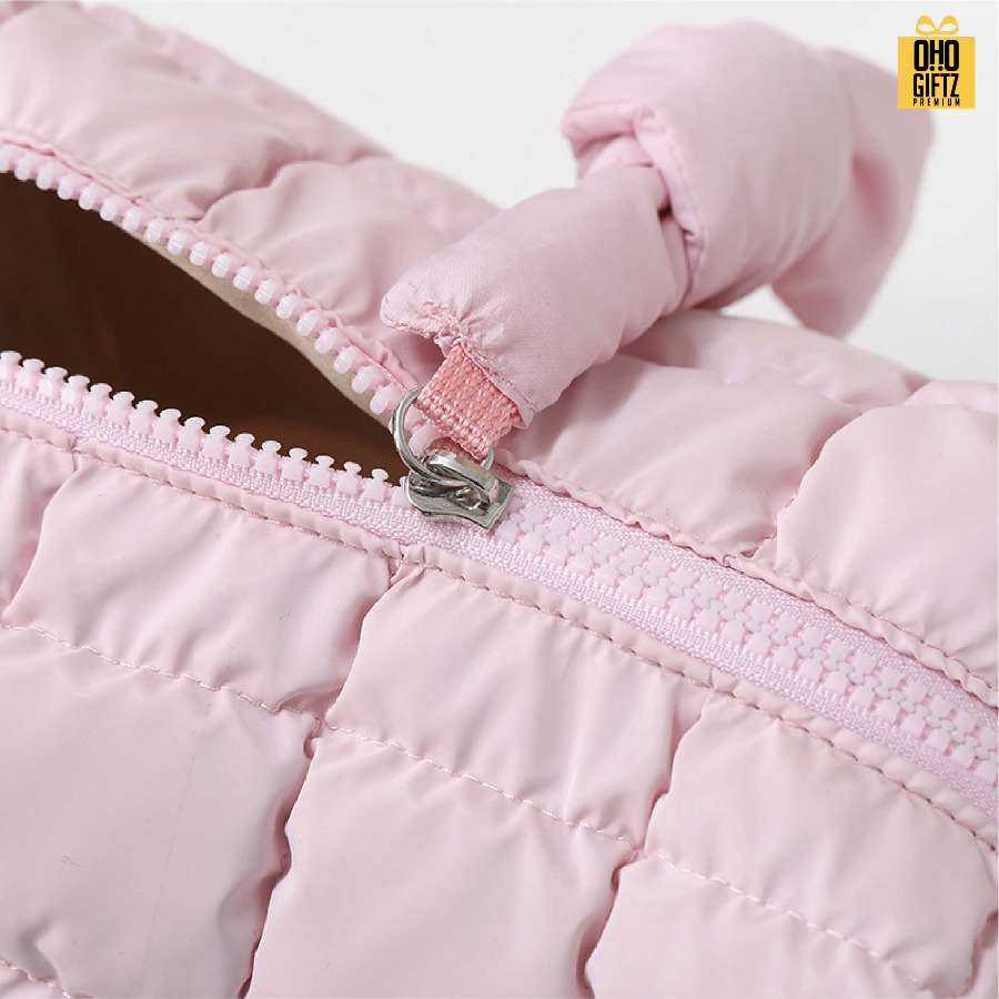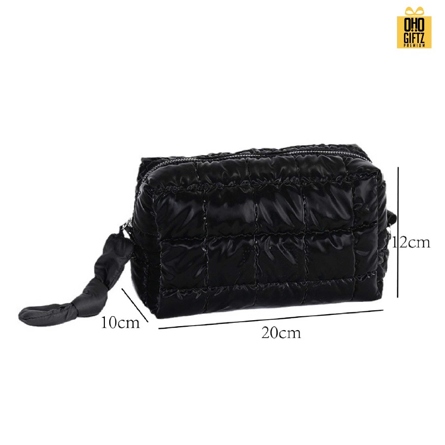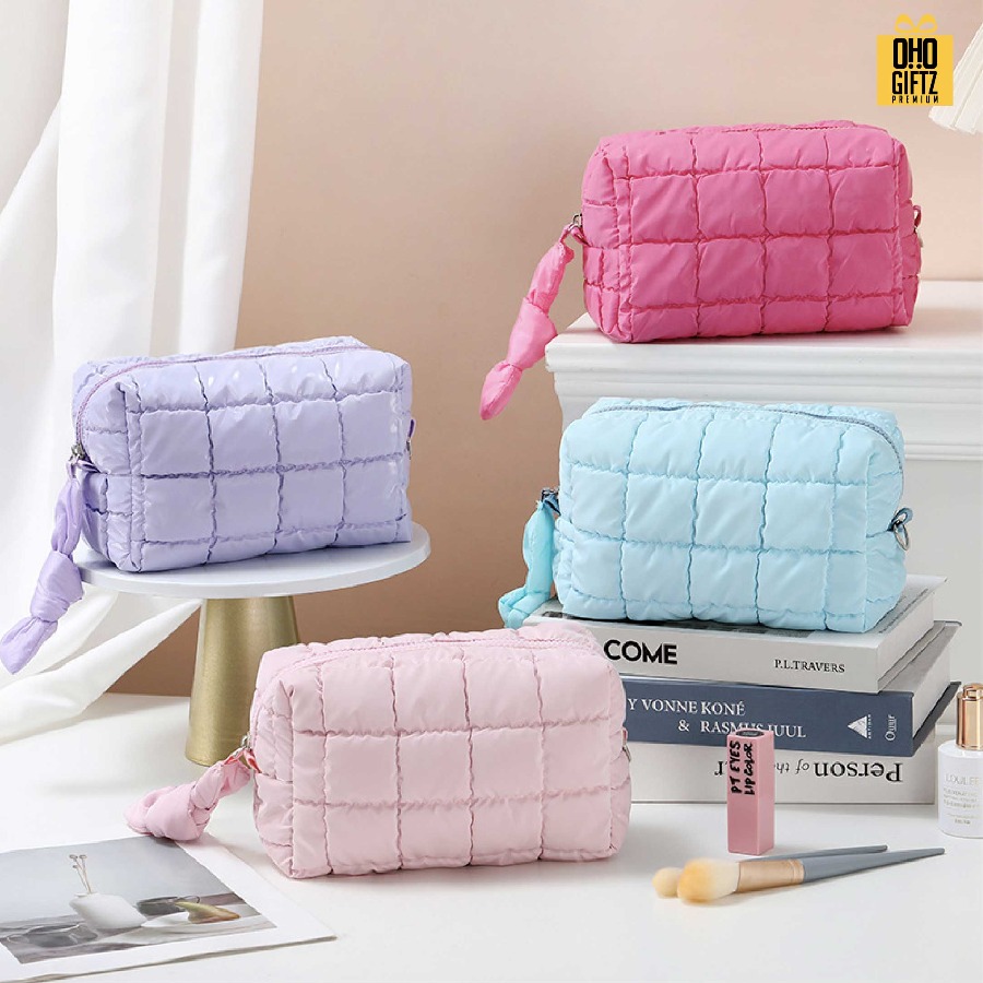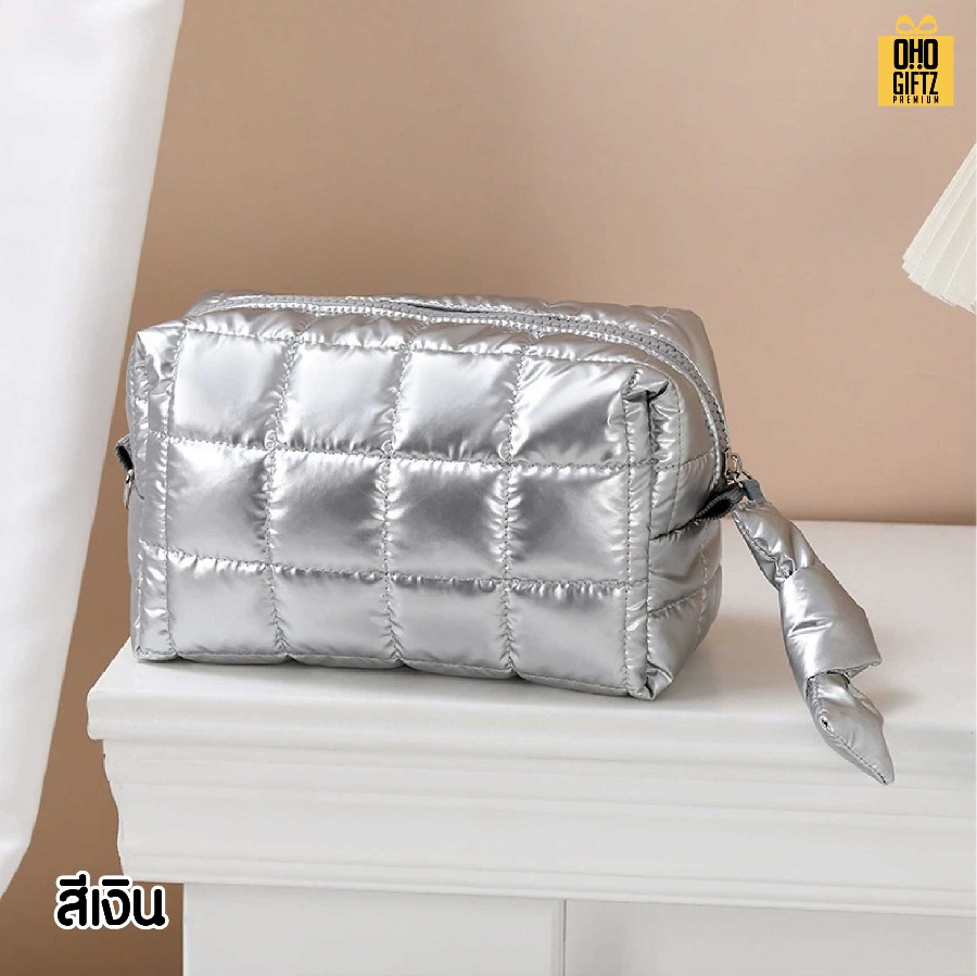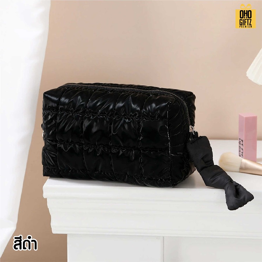 กระเป๋าเครื่องสำอางผ้าบุนวม ผลิตโลโก้ ติดลาเบล ทำเป็นของพรีเมี่ยม (ขั้นต่ำ 100 ชิ้น)