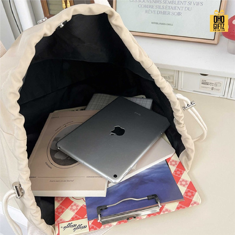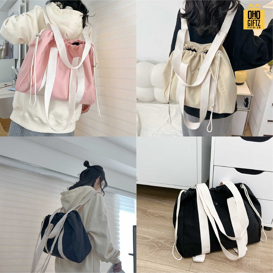 กระเป๋าเป้สะพายหลังมีเชือกรูด ดีไซน์เก๋ไก๋ จุของได้เยอะ ปากกระเป๋ากว้าง สามารถบรรจุสิ่งของได้เยอะ ผลิตจากวัสดุคุณภาพดี น้ำหนักเบา สะดวกต่อการใช้งาน