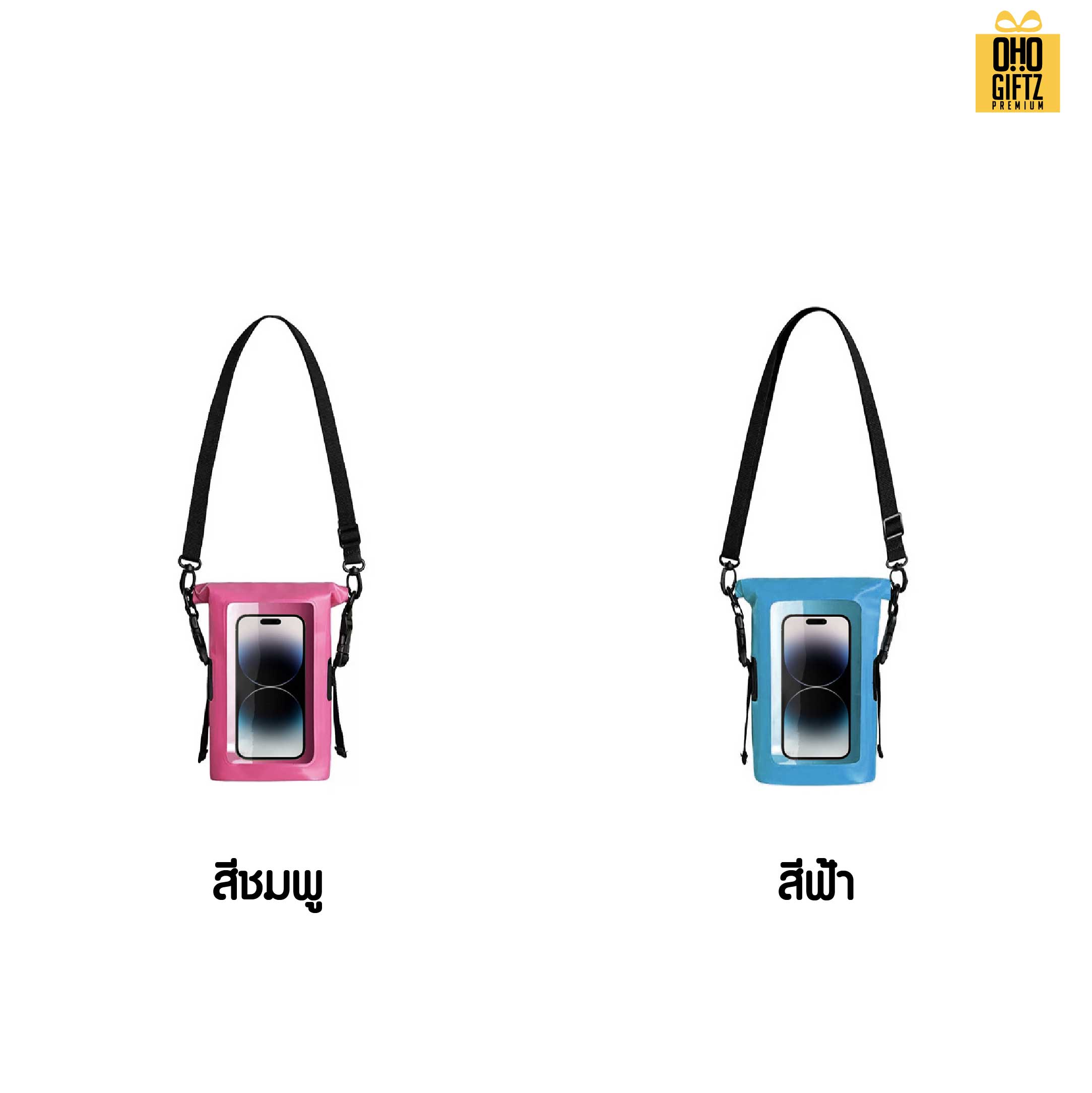 กระเป๋าใส่มือถือกันน้ำ ดีไซน์เก๋ไก๋ สีสันสวยงาม มีให้เลือกหลายสี สามารถใช้ใส่โทรสับมือถือ มาพร้อมสายคล้องคอ ผลิตจากวัสดุคุณภาพดี น้ำหนักเบา พกพาสะดวก