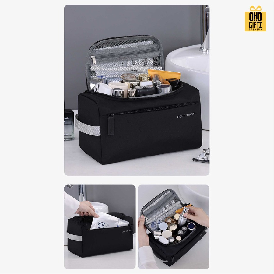 กระเป๋าใส่เครื่องสำอางพกพาเดินทาง ดีไซน์มินิมอล สามารถบรรจุเครื่องสำอาง ผลิตจากวัสดุคุณภาพดี ใส่สิ่งของได้สะดวกปากกระเป๋ากว้าง เหมาะกับยามเดินทาง หรือพกพาออกนอกสถานที่