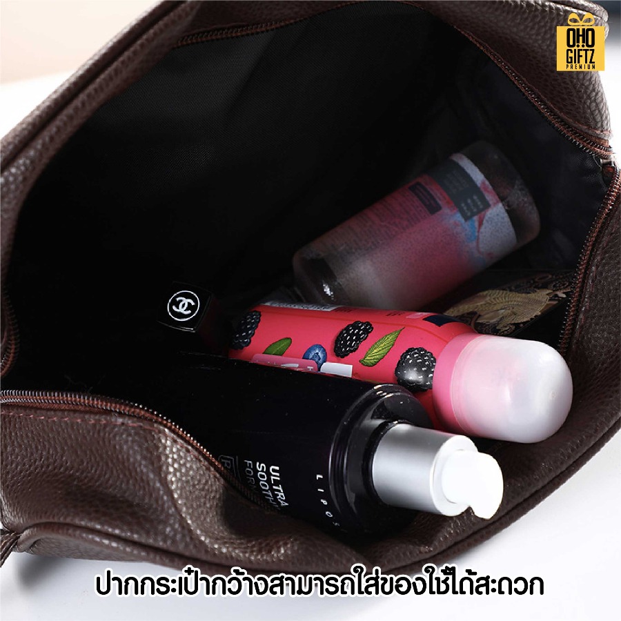 กระเป๋าใส่เครื่องสำอาง หนัง PU ดีไซน์มินิมอล สามารถบรรจุเครื่องสำอาง ผลิตจากวัสดุคุณภาพดี ใส่สิ่งของได้สะดวกปากกระเป๋ากว้าง เหมาะกับยามเดินทาง หรือพกพาออกนอกสถานที่