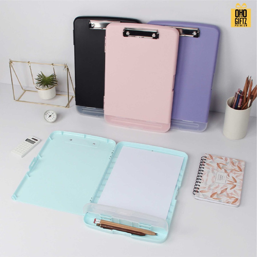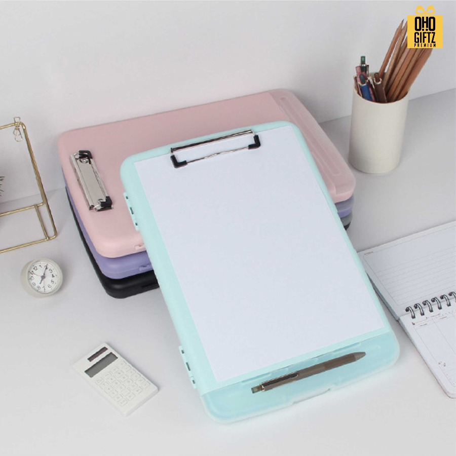 กล่องแฟ้มคลิปเอกสาร วางปากกาได้ ดีไซน์มินิมอล สีสันสวยงาม เหมาะสำหรับใส่เอกสารต่างๆ ผลิตจากวัสดุคุณภาพดี ขนาดพอเหมาะมาพร้อมสายคล้องนุ่มนิ่ม น้ำหนักเบา พกพาสะดวก