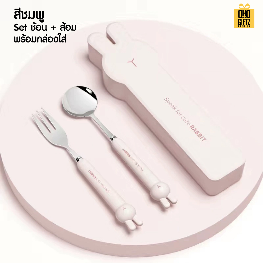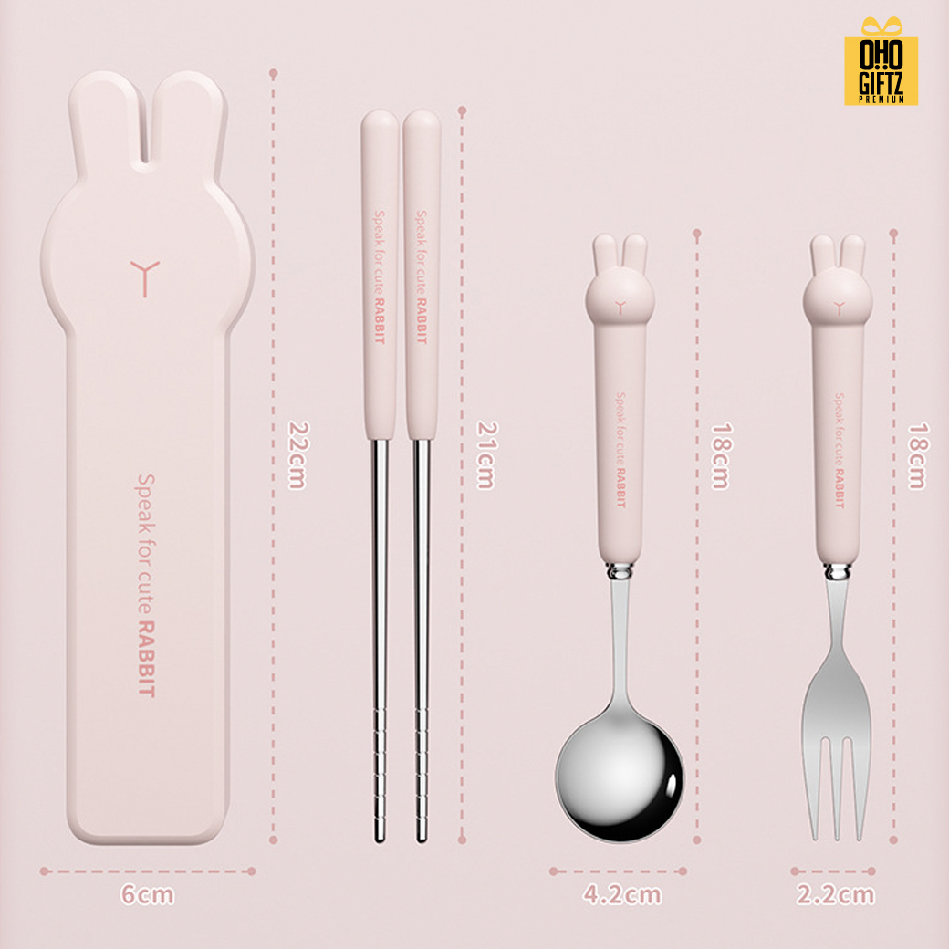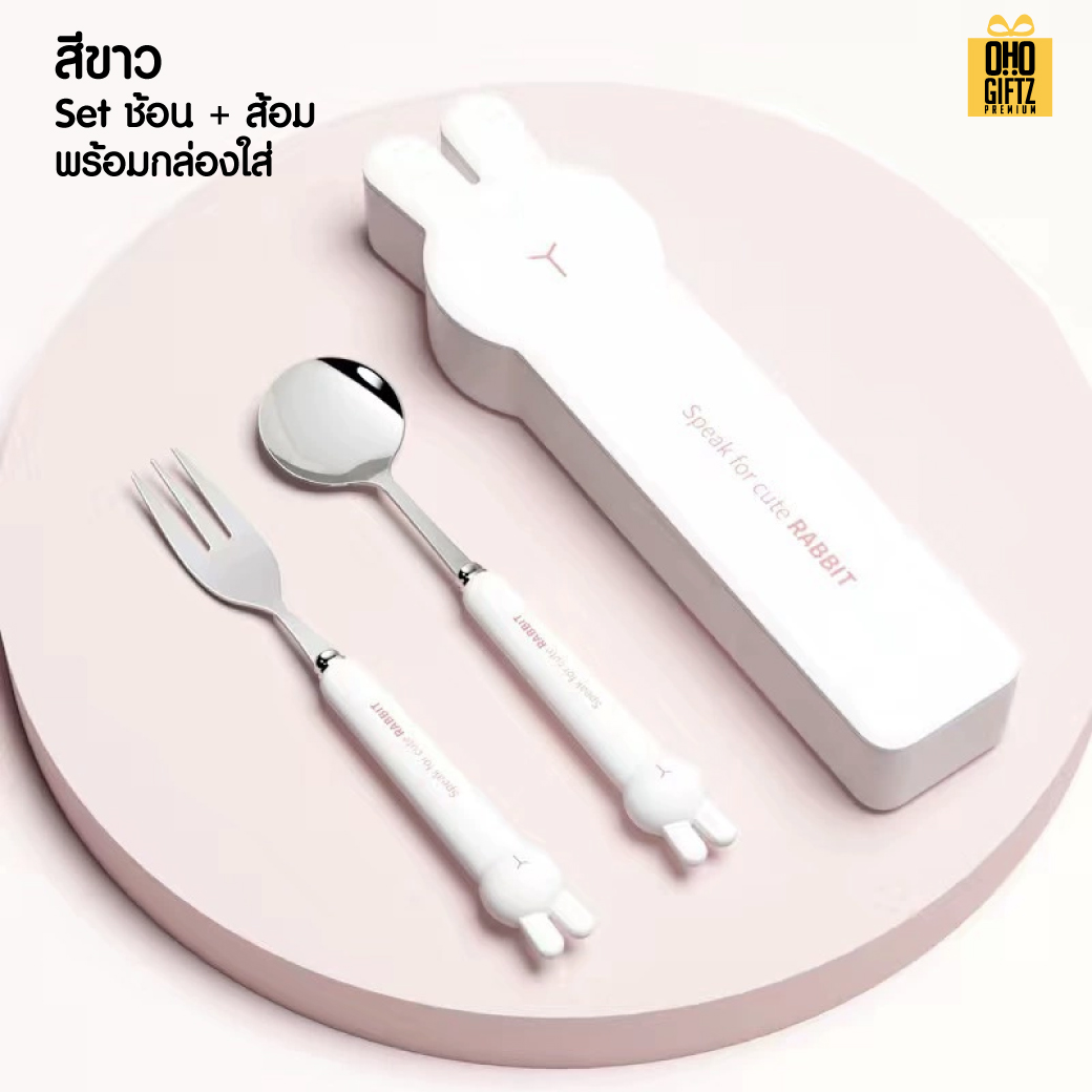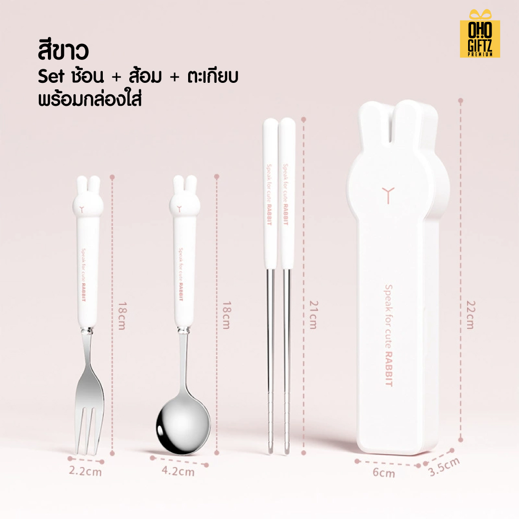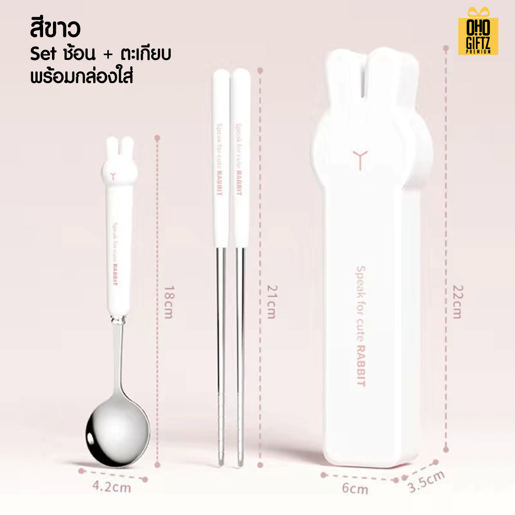 กล่องใส่ช้อนส้อมตะเกียบ กระต่าย สกรีนชื่อ สกรีนโลโก้ ทำเป็นของพรีเมี่ยมได้ (ขั้นต่ำ 100 ชิ้น)