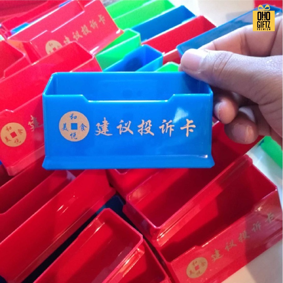 รับผลิต กล่องใส่นามบัตรตั้งโต๊ะ สกรีนชื่อหรือโลโก้ต่างๆ ได้ตามต้องการ ทำเป็นของพรีเมี่ยม ของที่ระลึก ของขวัญ เพื่องานสัมมนา, ประชาสัมพันธ์กิจกรรมบริษัท, สร้างแบรนด์ หรือโปรโมทสินค้า