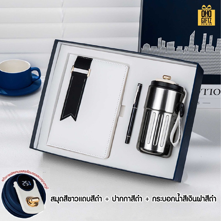 ชุดของขวัญนักธุรกิจ สมุดโน้ต + ปากกา + กระบอกน้ำ ดีไซน์เรียบหรู ผลิตจากวัสดุคุณภาพดี ทนทานต่อการใช้งาน เหมาะสำหรับมอบให้เป็นของขวัญ ของที่ระลึก หรือของพรีเมี่ยมได้ทุกเทศกาล