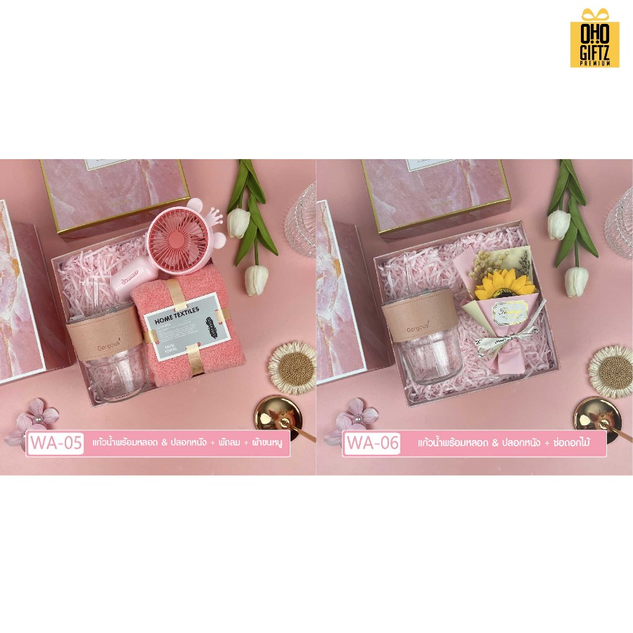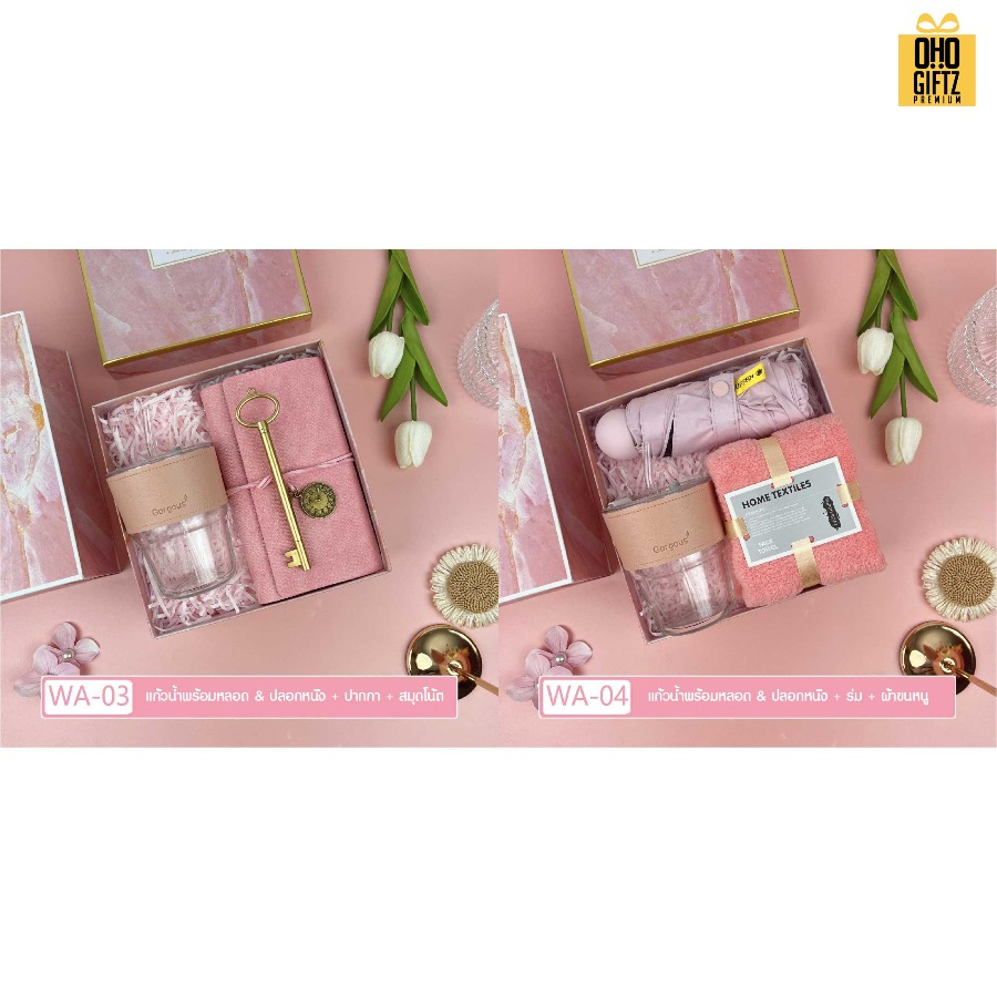 ชุดของขวัญ Giftset โทนสีชมพู มีหลายแบบให้เลือก ดีไซน์เรียบหรู ในเซ็ตประกอบไปด้วย เช่น ปากกาลูกลื่น สมุดโน๊ต กระบอกน้ำ ผ้าขนหนู เหมาะสำหรับมอบให้เป็นของขวัญ ของที่ระลึก หรือของพรีเมี่ยมได้ทุกเทศกาล