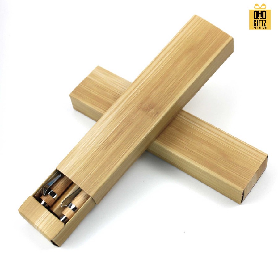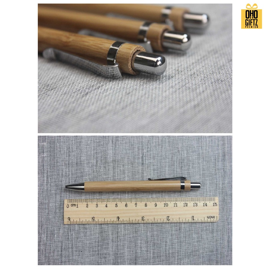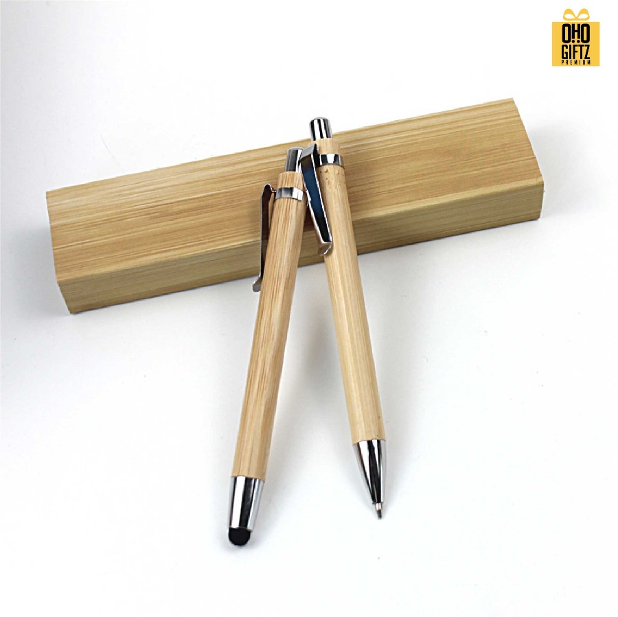 ชุดปากกาด้ามไม้ไผ่ แบบกดและทัชสกรีน สกรีนชื่อ สกรีนโลโก้ ทำเป็นของพรีเมี่ยมได้ (ขั้นต่ำ 100 ชิ้น)