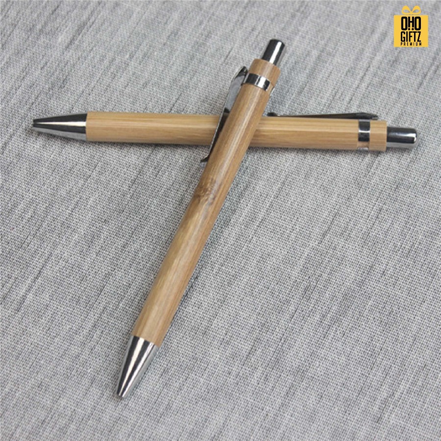 ชุดปากกาด้ามไม้ไผ่ แบบกดและทัชสกรีน ดีไซน์เก๋ไก๋ เขียนลื่นไม่สะดุด น้ำหมึกเเห้งไว ตัวปากกาน้ำหนักเบา ด้ามจับถนัดมือ สามารถใช้ทัชสกรีนมือถือได้ตามต้องการ ผลิตจากวัสดุคุณภาพดี สะดวกในการพกพา