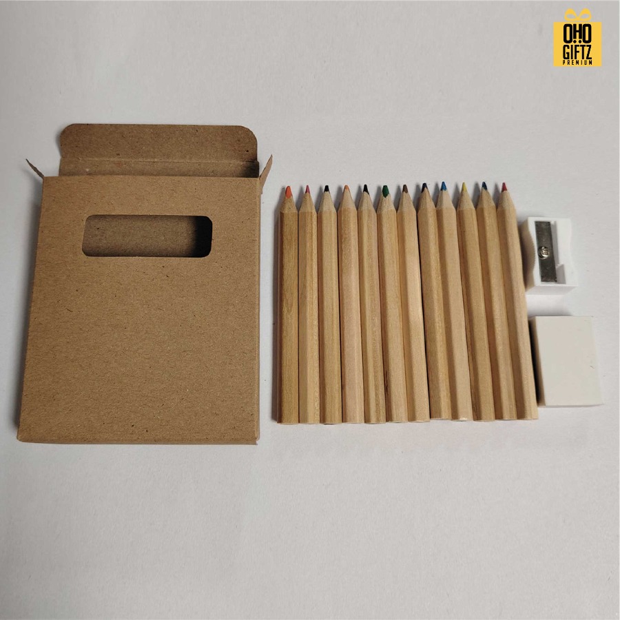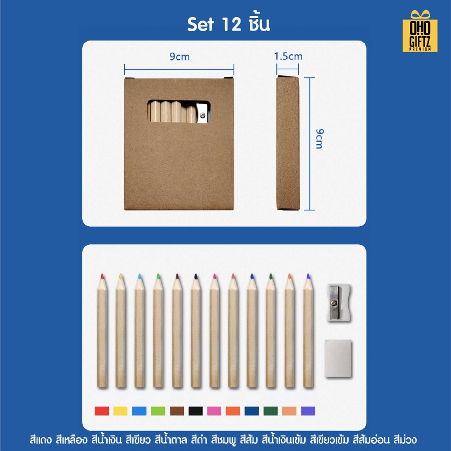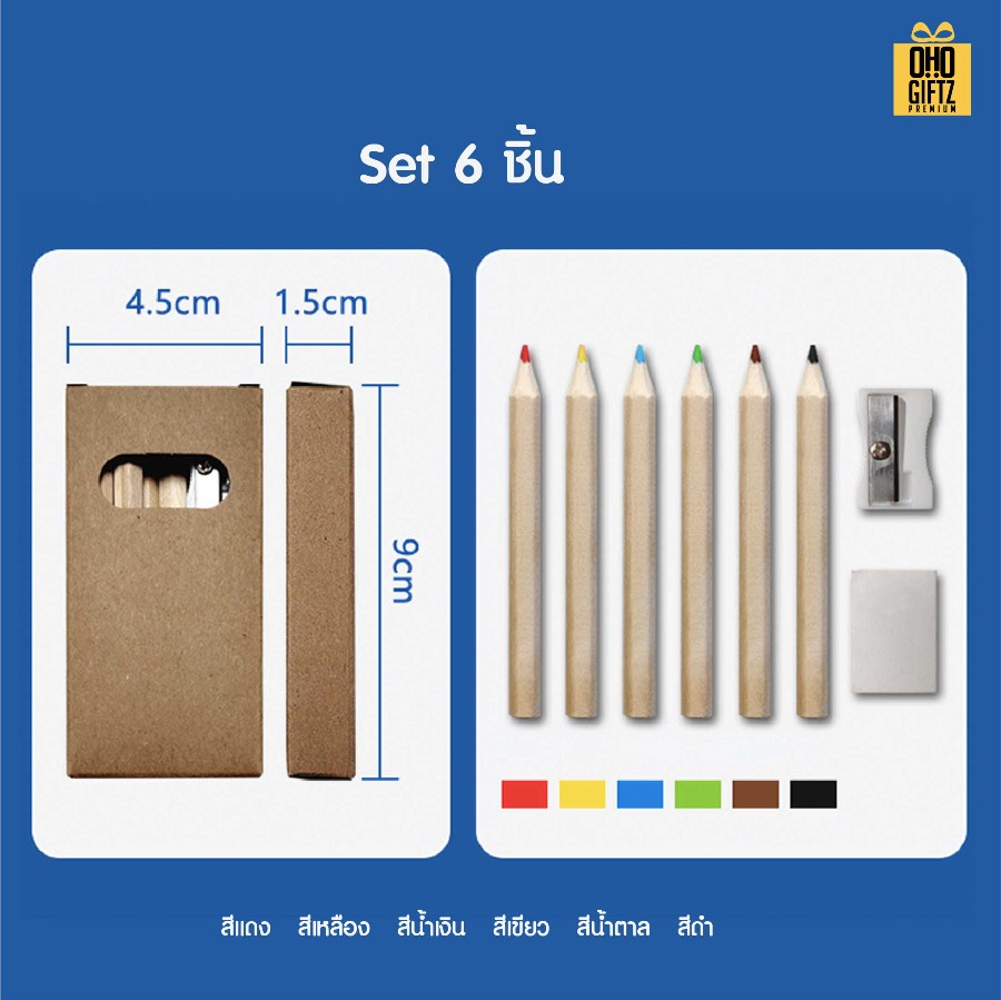 ชุดเซ็ทดินสอสีพร้อมเหลากบและยางลบ สกรีนโลโก้ ทำเป็นของพรีเมี่ยม ของชำร่วย (ขั้นต่ำ 100 ชิ้น)