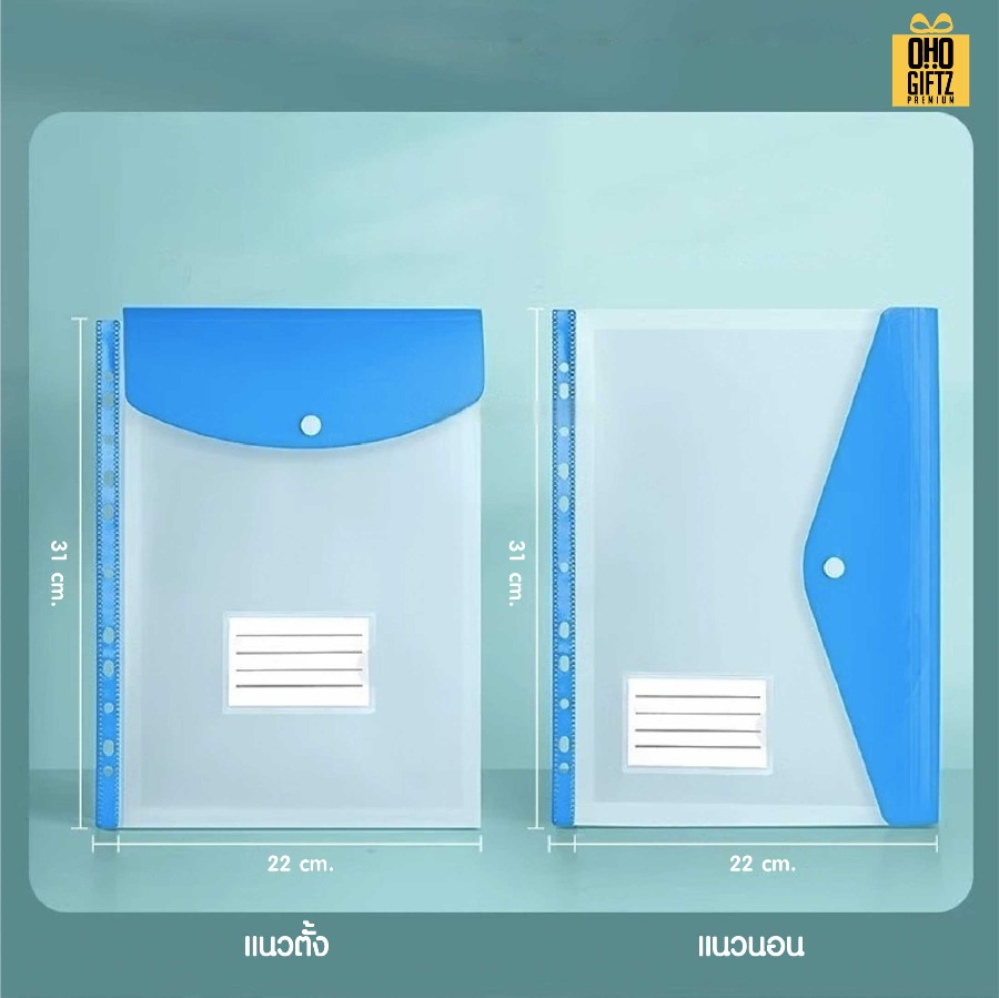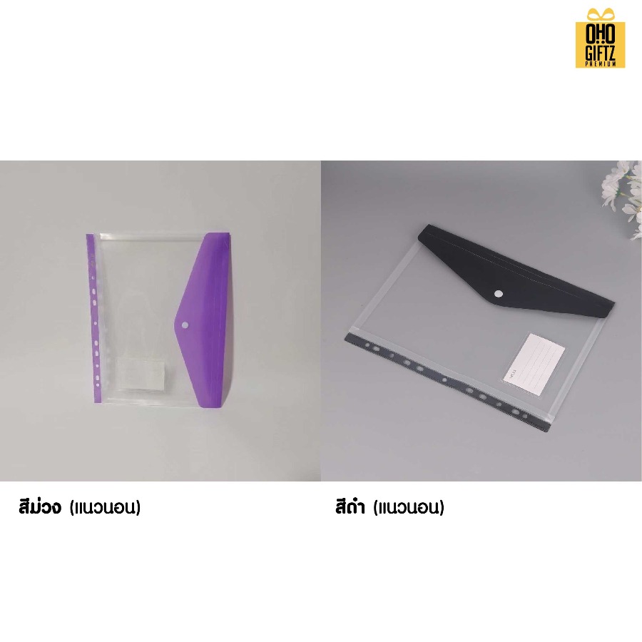 ซองพลาสติกใส่เอกสารแบบเจาะรูเข้าห่วง สกรีนชื่อ สกรีนโลโก้ ทำเป็นของพรีเมี่ยมได้ (ขั้นต่ำ 100 ชิ้น)
