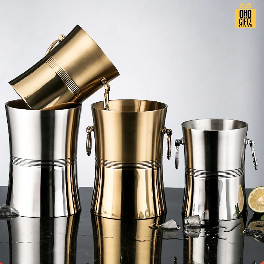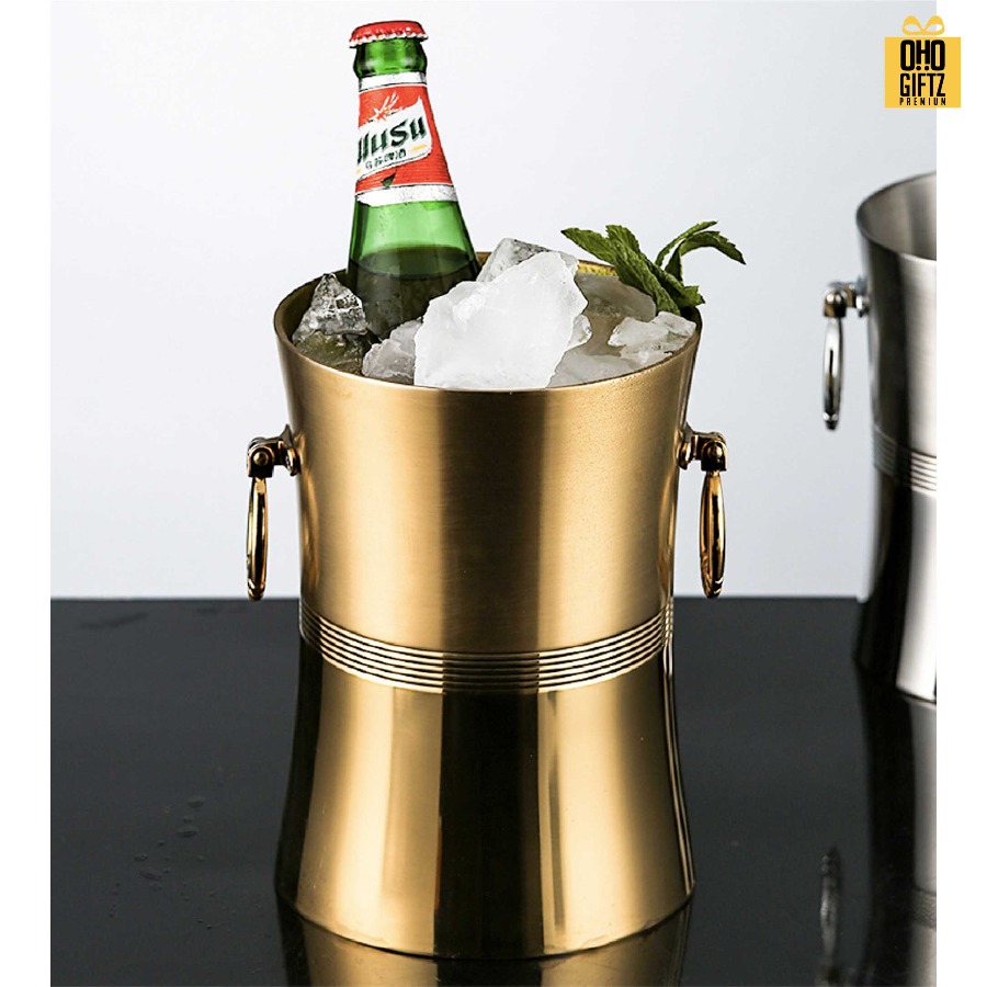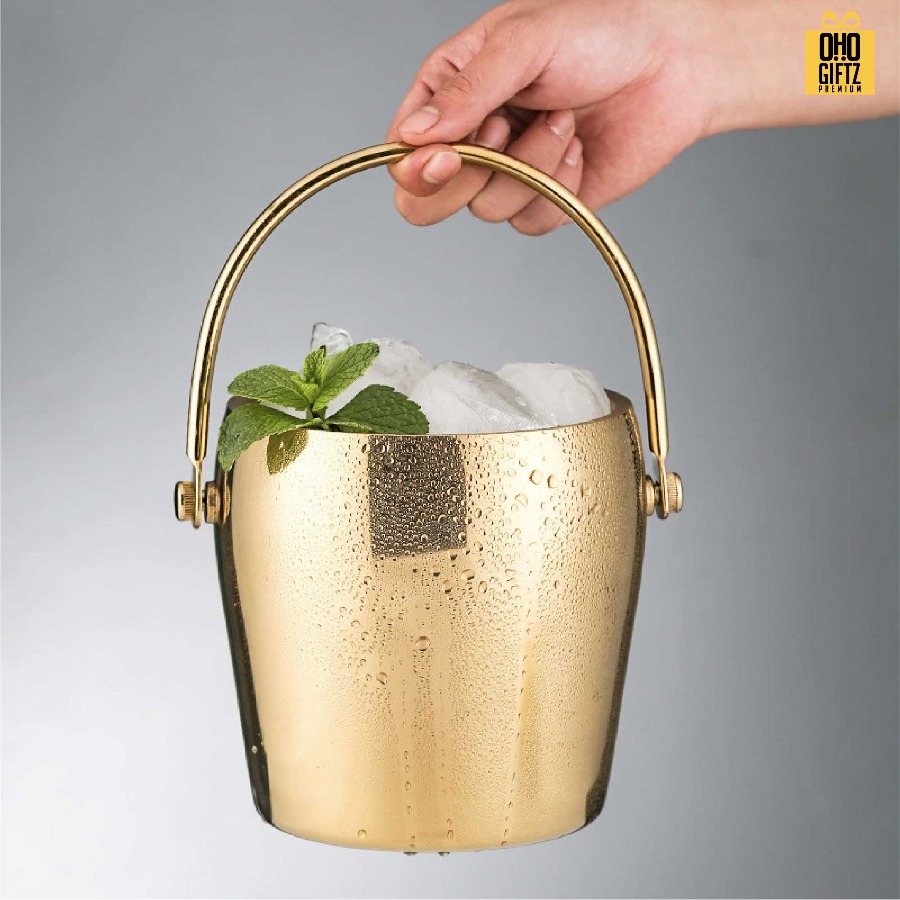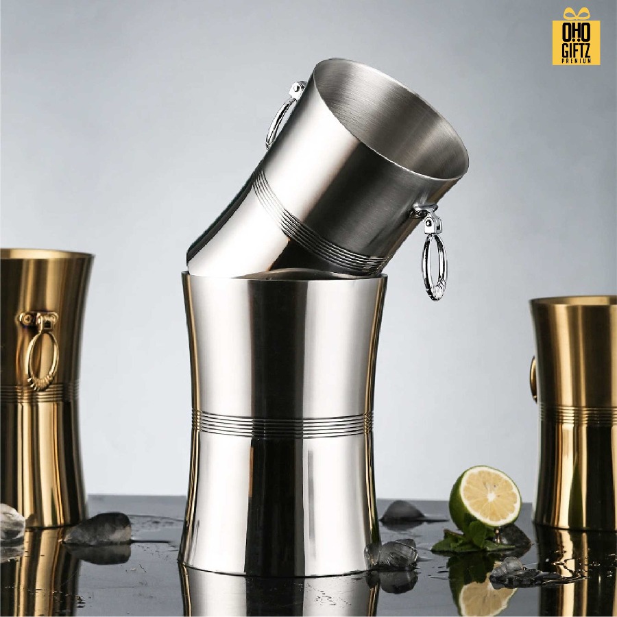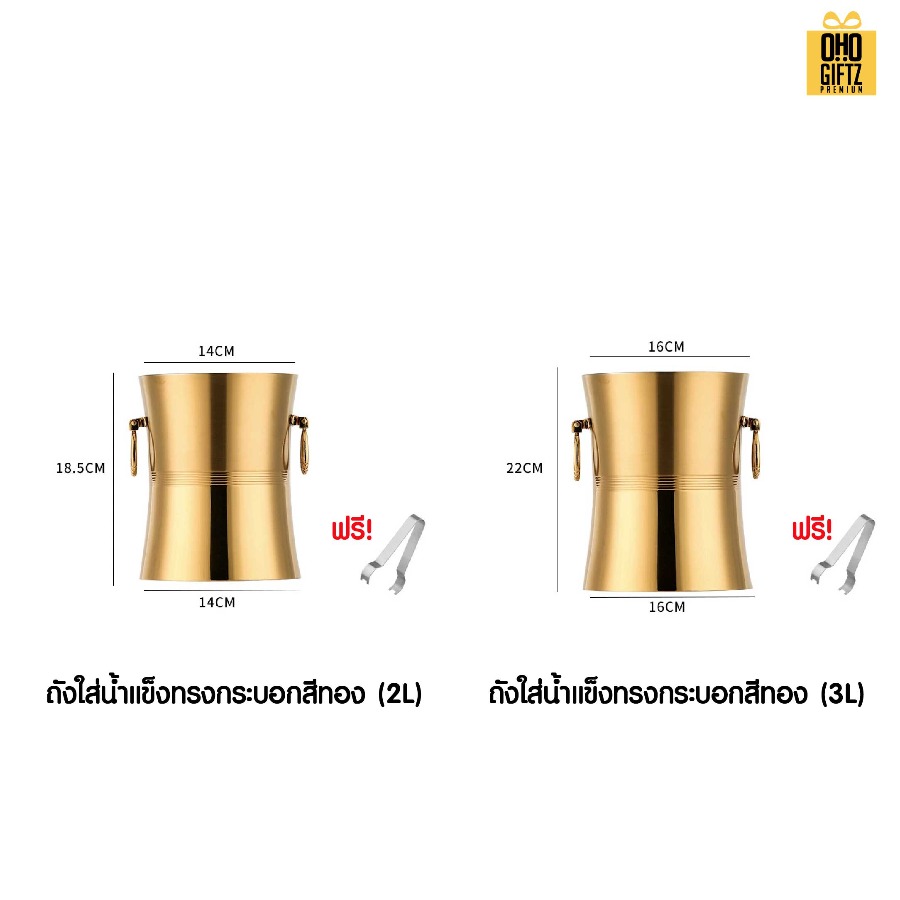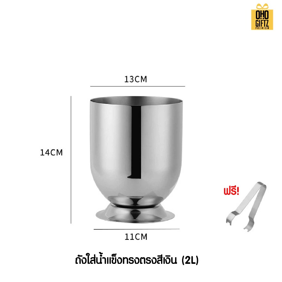 ถังน้ำแข็งสแตนเลสพร้อมฝาปิด สกรีนชื่อ สกรีนโลโก้ ทำเป็นของพรีเมี่ยมได้ (ขั้นต่ำ 100 ชิ้น)