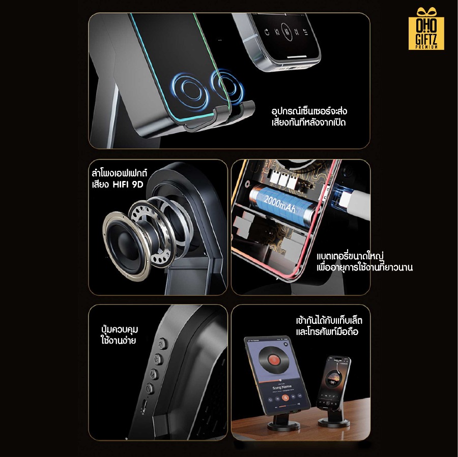 ที่วางมือถือวางลำโพง bluetooth มีไฟ LED ดีไซน์มินิมอล ใช้สำหรับวาง โทรศัพท์มือถือ มีช่องลำโพงออกช่วยทำให้เสียงที่ออกมากังวาลยิ่งขึ้น เเละ ช่วยเพิ่มความสะดวกสบายในการใช้งาน น้ำหนักเบา สามารถพกพาไปได้ทุกที่