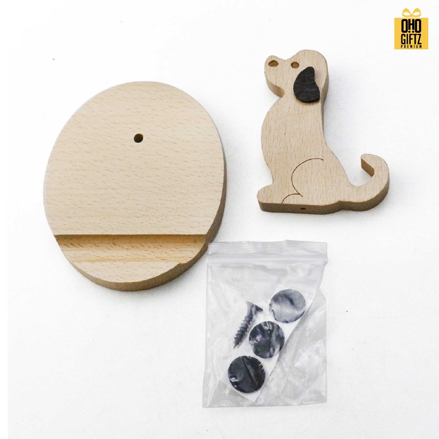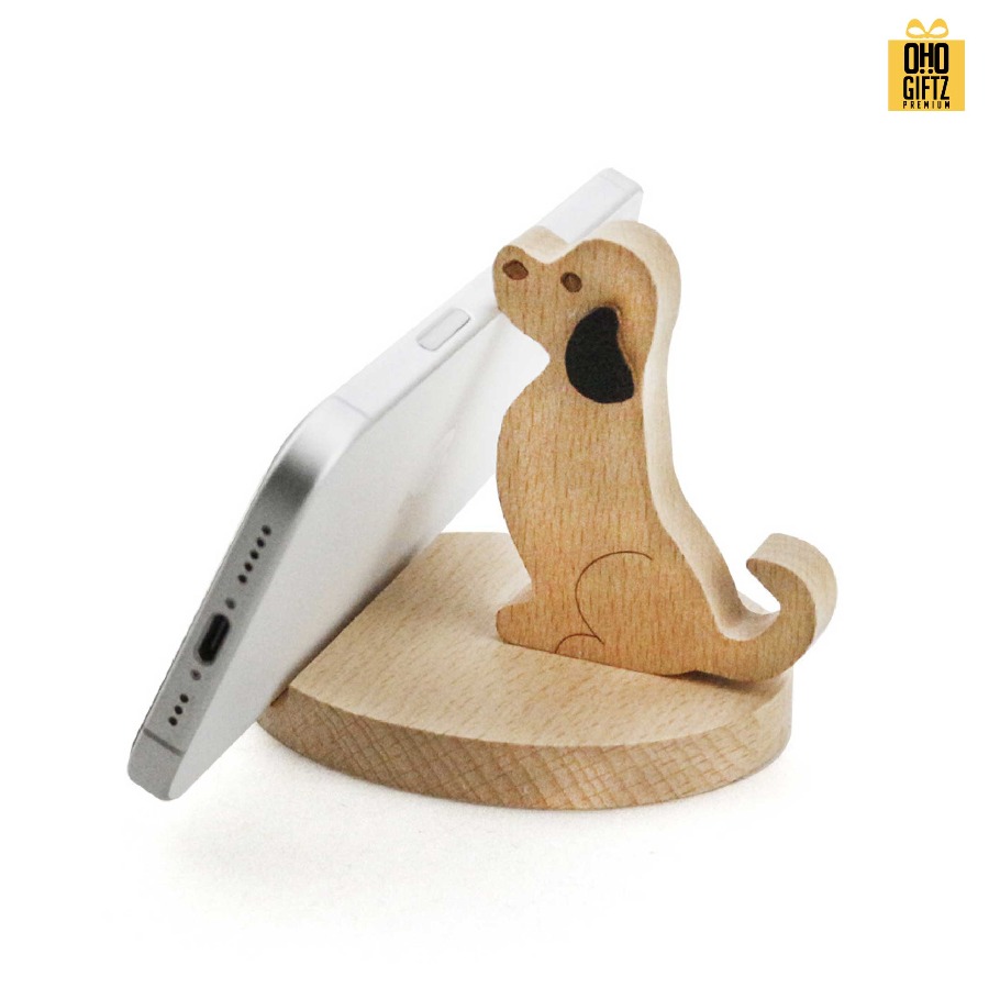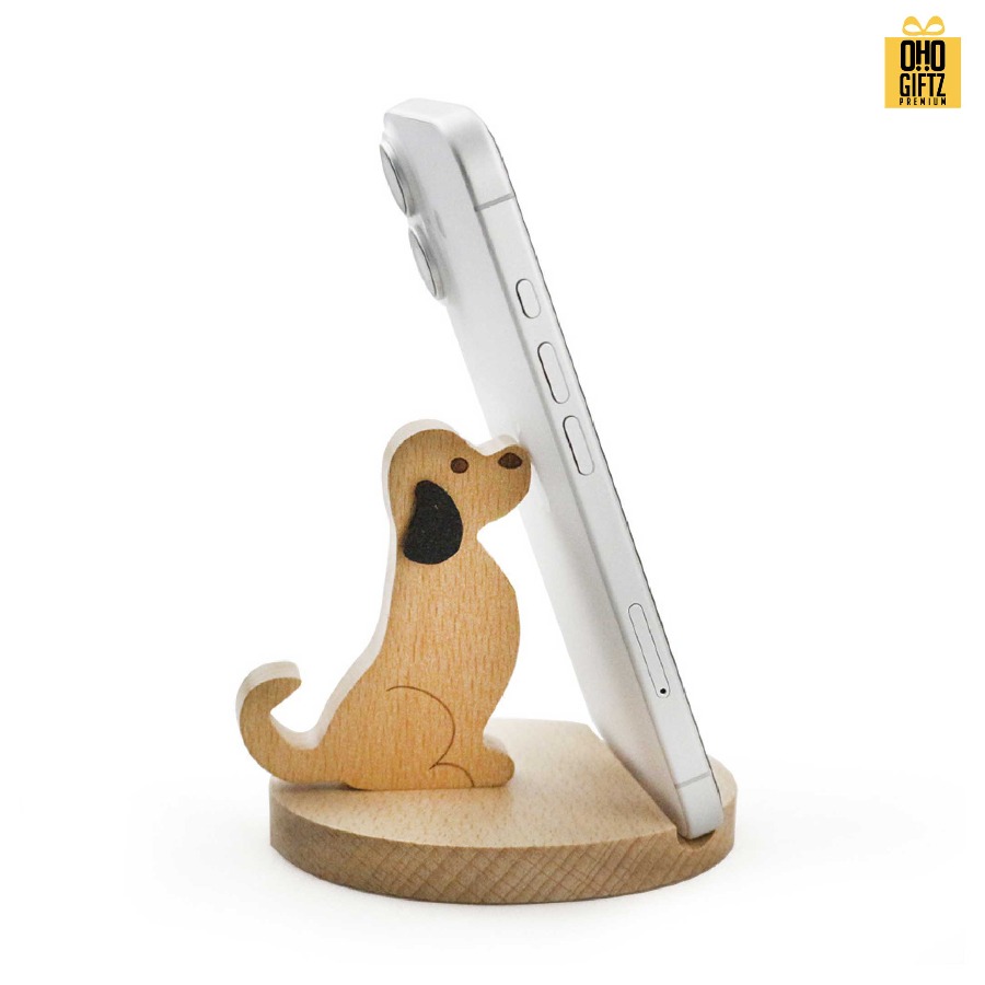 ที่วางมือถือไม้รูปสุนัข สกรีนโลโก้ ทำเป็นของพรีเมี่ยมได้ (ขั้นต่ำ 100 ชิ้น)