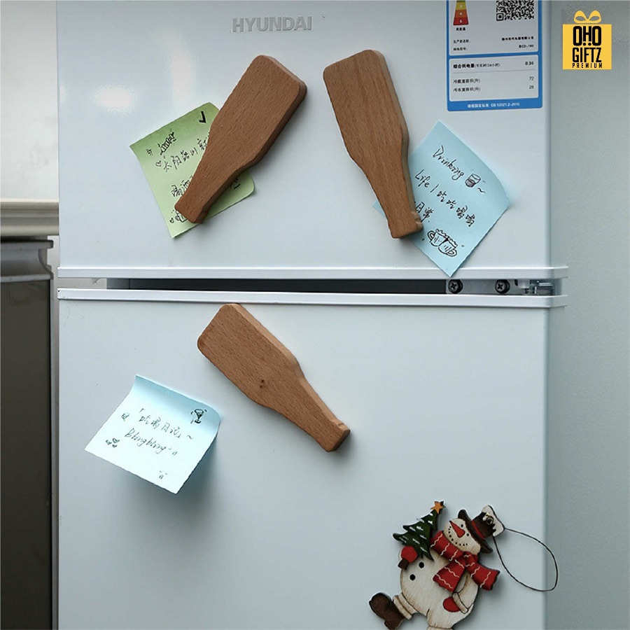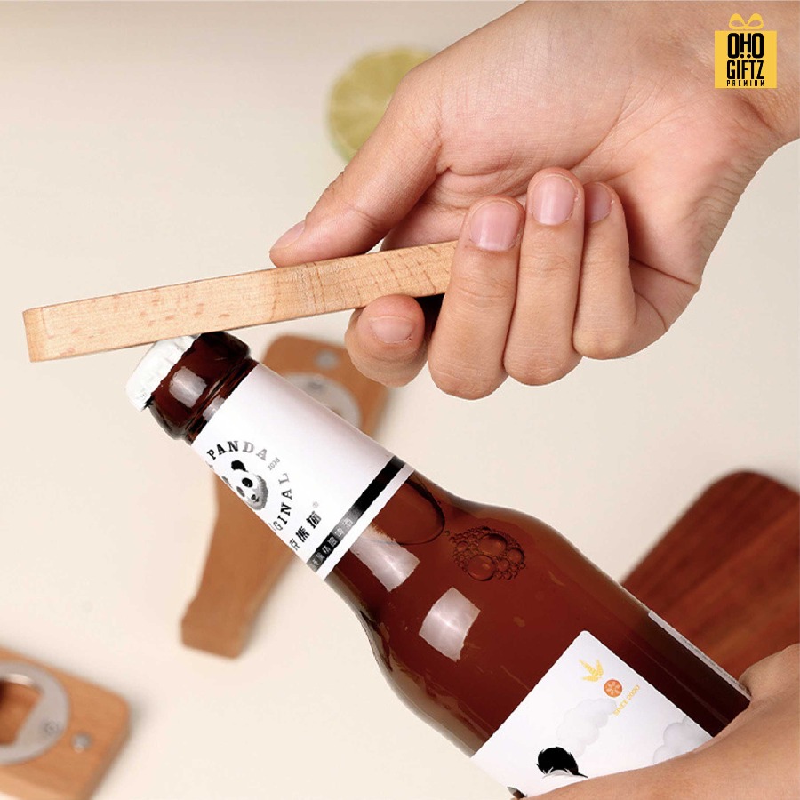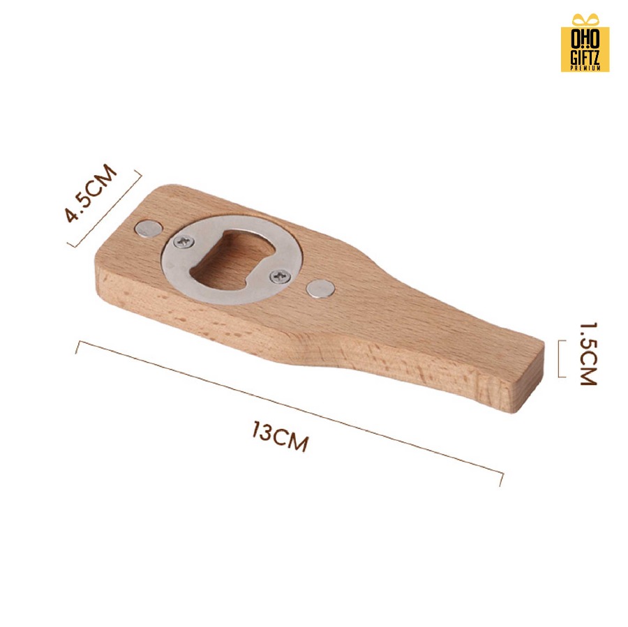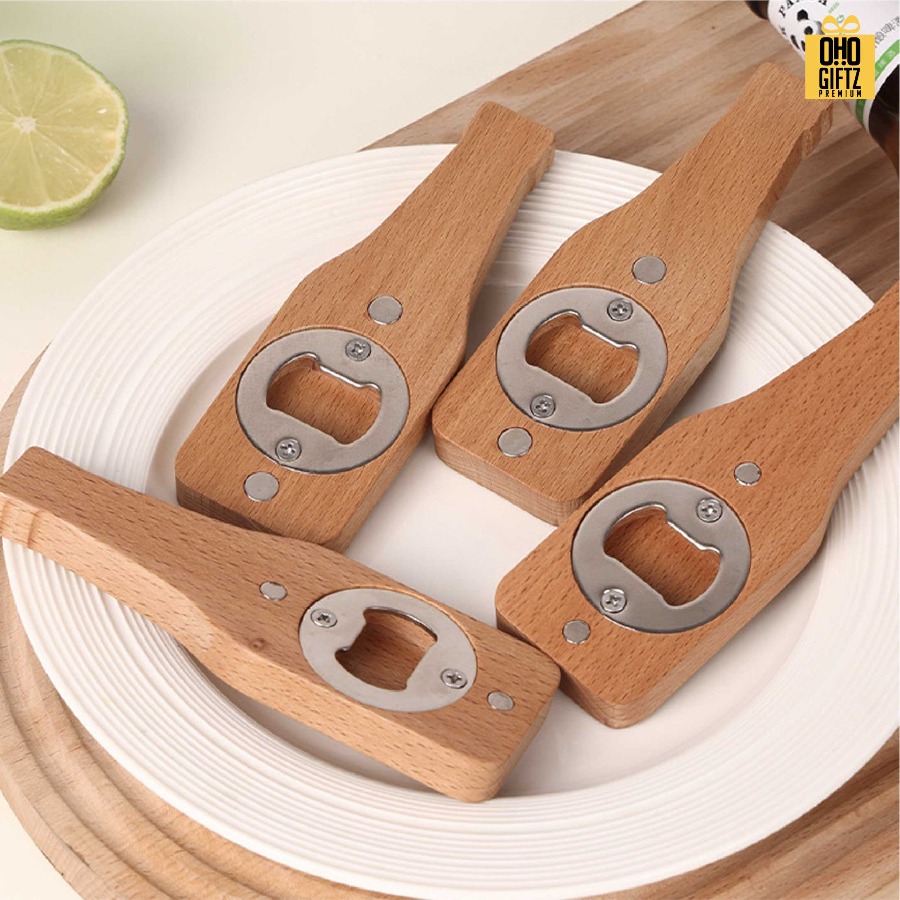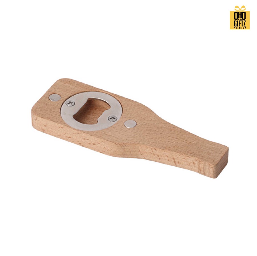 ที่เปิดขวดไม้แม่เหล็กติดตู้เย็นทรงขวด สกรีนโลโก้ ทำเป็นของพรีเมี่ยม ของชำร่วยได้ (ขั้นต่ำ 100 ชิ้น)
