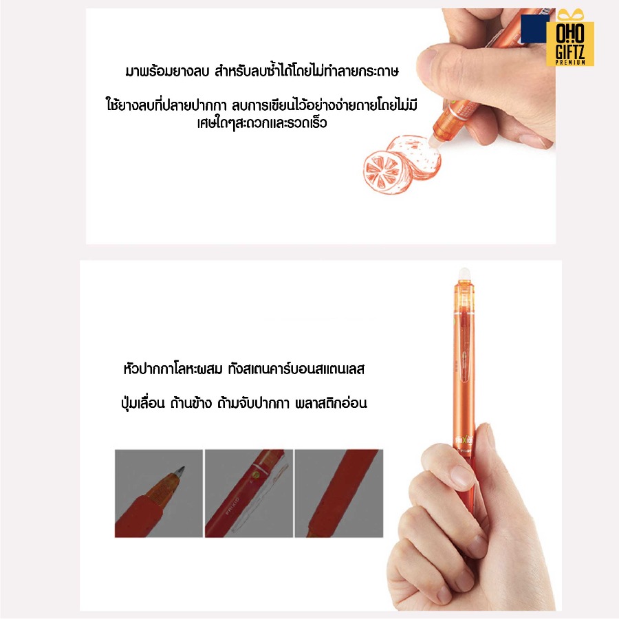 ปากกาหมึกเจล แบบลบได้ สกรีนชื่อ สกรีนโลโก้ ทำเป็นของพรีเมี่ยมได้ (ขั้นต่ำ 100 ชิ้น)