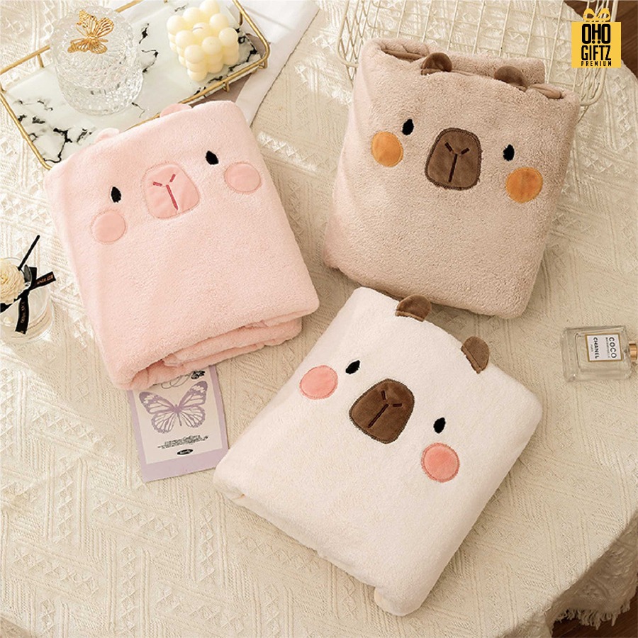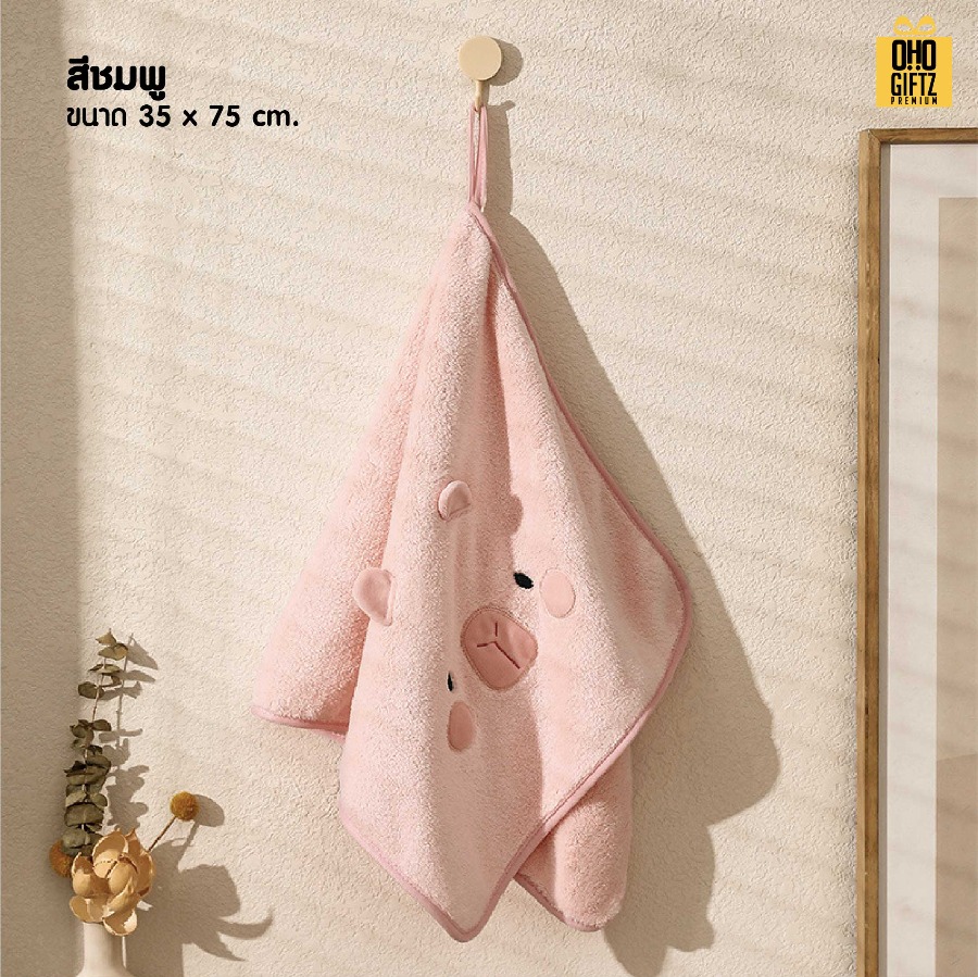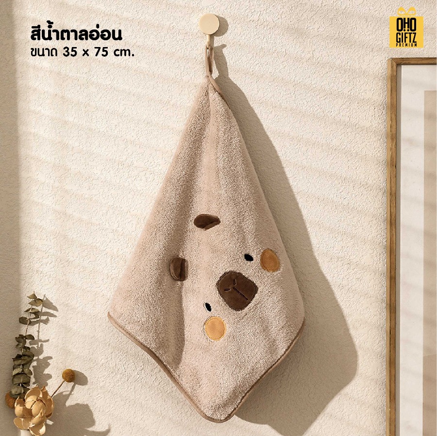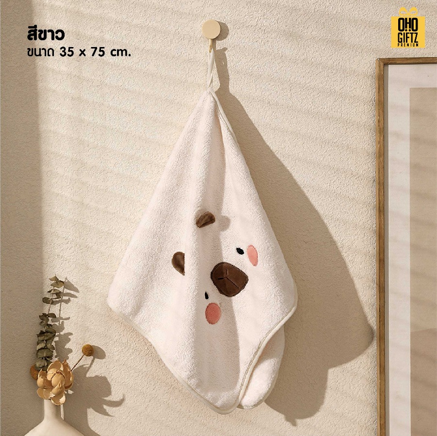 ผ้าเช็ดผมคาปิบาร่า สกรีนโลโก้ ติดลาเบล ทำเป็นของพรีเมี่ยมได้ ( ขั้นต่ำ 100 ชิ้น )