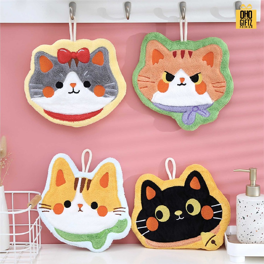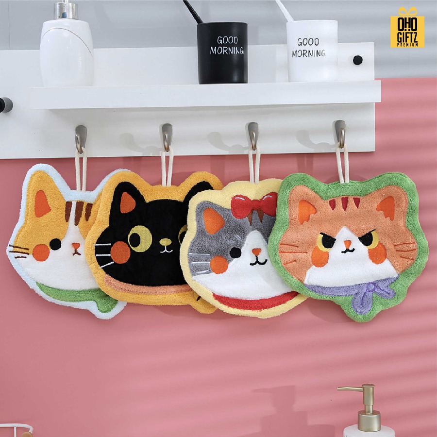 ผ้าเช็ดมือลายน้องแมว ดีไซน์น่ารัก สีสันสดใส ผ้าเช็ดมือเนื้อนุ่มนิ่มมาพร้อมที่แขวน เหมาะสำหรับใช้เช็ดมือ ดีไซน์น่ารักสีสันสวยงาม ผลิตจากวัสดุคุณภาพดี