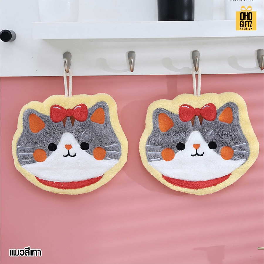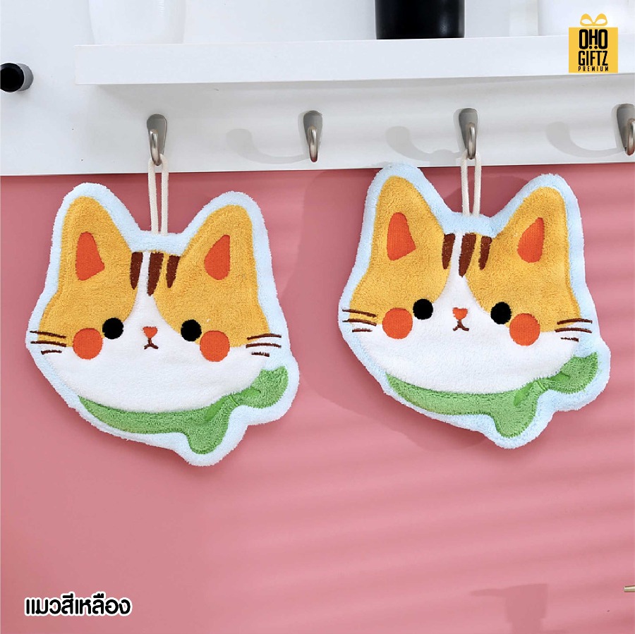 ผ้าเช็ดมือลายน้องแมว สกรีนโลโก้ ติดลาเบล ทำเป็นของพรีเมี่ยมได้ ( ขั้นต่ำ 100 ชิ้น )
