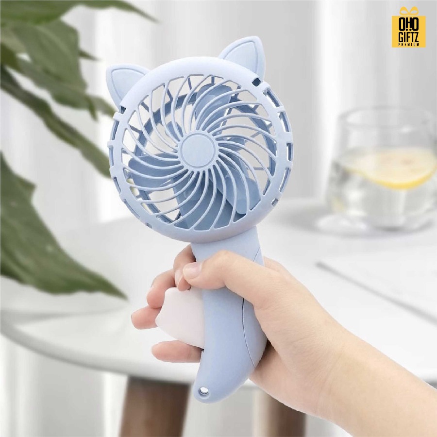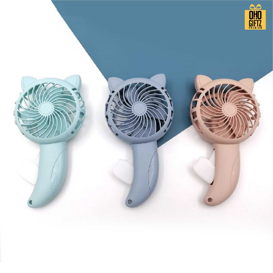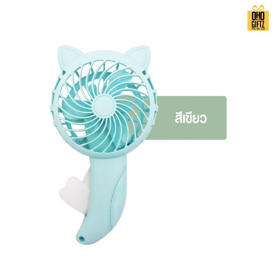 พัดลมหูแมวกดมือไม่ต้องใช้ถ่าน สกรีนโลโก้ ทำเป็นของพรีเมี่ยม (ขั้นต่ำ 100 ชิ้น)