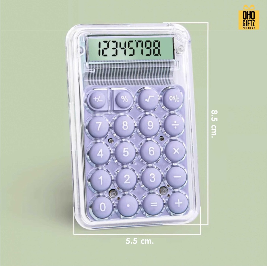 เครื่องคิดเลขพกพา ดีไซน์เก๋ไก๋ ปุ่มซิลิโคนให้สัมผัสที่นุ่มนวล ตัวเลขดิจิตอลชัดเจน ผลิตจากวัสดุคุณภาพดี ขนาดเล็ก พกพาสะดวก