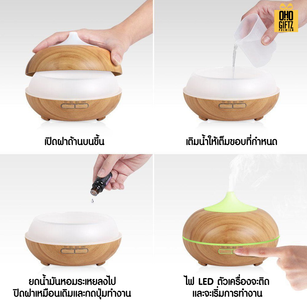 เครื่องพ่นอโรม่าไม้ ช่วยทำความชื้นในอากาศ พร้อมปล่อยกลิ่นหอมจากน้ำมันหอมระเหย เพียงเเค่เเตะปุ่มเดียว การทำงานไร้เสียงรบกวน สะดวกใช้งานยามทำงานหรือพักผ่อน